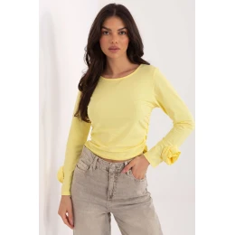 Stylový, casualový longsleeve typu blůza, který kombinuje jednoduchost s jemnými detaily, zdůrazňujícími ženský charakter. Hladký materiál z měkké bavlny zajistí pohodlí při nošení a krátká délka dodává moderní, casualový styl. Dlouhé rukávy jsou ozdobeny jemným kvítkem z materiálu, který blůze dodává decentní eleganci. Marské po stranách efektně tvarují postavu, zdůrazňují pas a dodávají lehkost celému outfitu. Bez zapínání je blůza snadno oblečitelná a ideální pro každodenní stylizace.