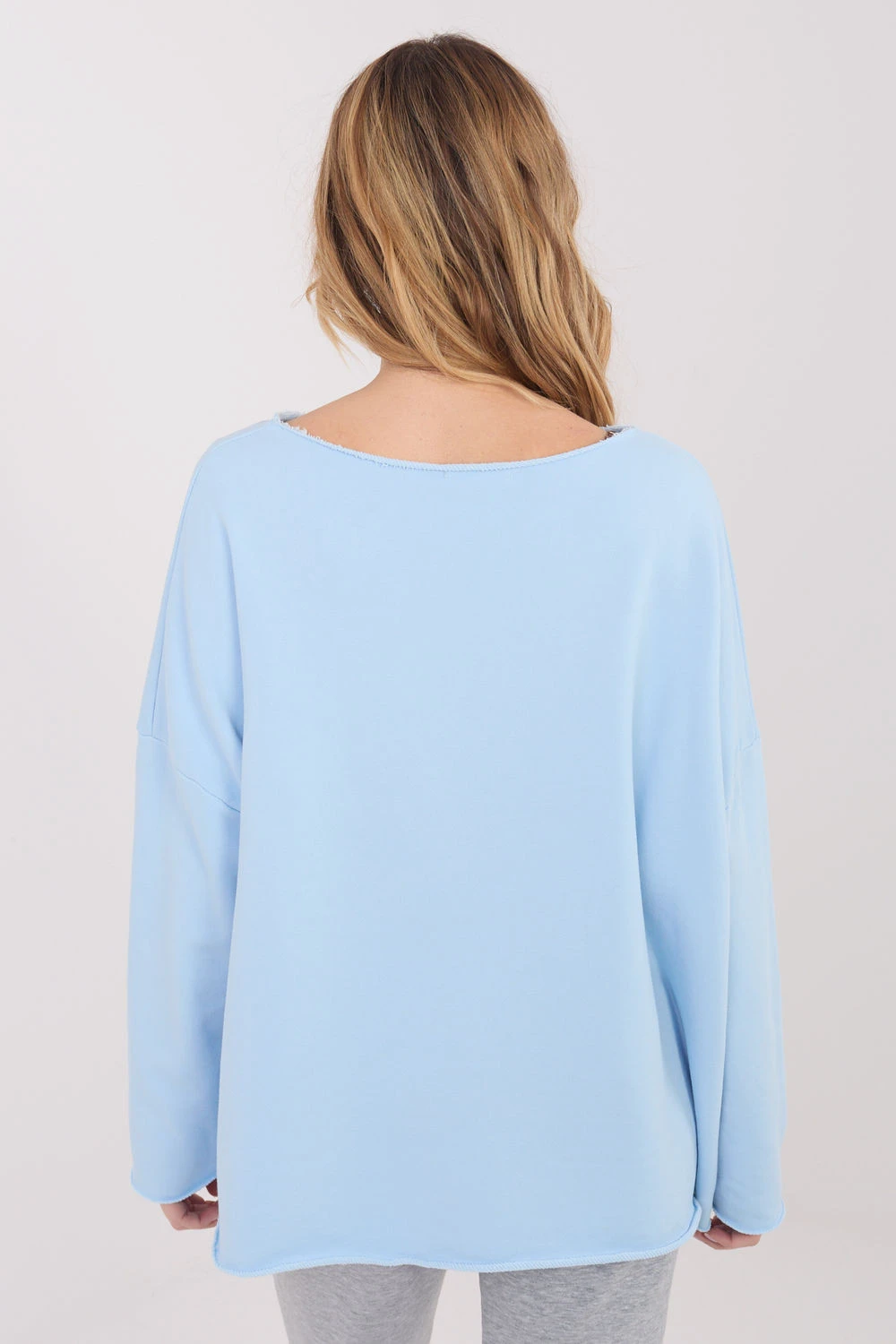 Casual blůzka s volným oversized střihem, kombinuje pohodlí s moderním stylem. Vyrobená z měkké směsi bavlny a polyesteru, poskytuje pohodlí nošení a odolnost materiálu. Model s hladkým vzorem má klasický, kulatý výstřih a dlouhé rukávy, co ho činí univerzálním prvkem každodenního šatníku. Standardní délka dělá z blůzky skvělý doplněk jak k džínům, tak k kalhotám typu casual. Bez zapínání zdůrazňuje jednoduchý, volný charakter oversized střihu.