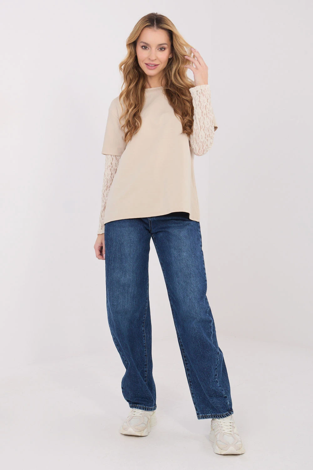 Každodenní dámská košile s casual charakterem kombinuje jednoduchost s jemným ženským akcentem. Vyrobená z vysoce kvalitní směsi bavlny, nylonu a elastanu je příjemná na dotek, prodyšná a elastická, poskytující pohodlí po celý den. Hladký materiál zdůrazňuje univerzální styl košile, díky čemuž se skvěle hodí do každodenních outfitů. Model má standardní délku a kulatý výstřih, který dodává klasickou eleganci. Rukávy 3/4 vyrobené z jemné krajky přidávají subtilní, efektní detail, který košili vyzdvihuje mezi klasickými návrhy. Je to ideální volba pro ženy, které oceňují pohodlí spojené s ženským zakončením.