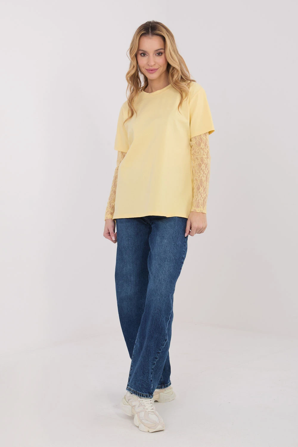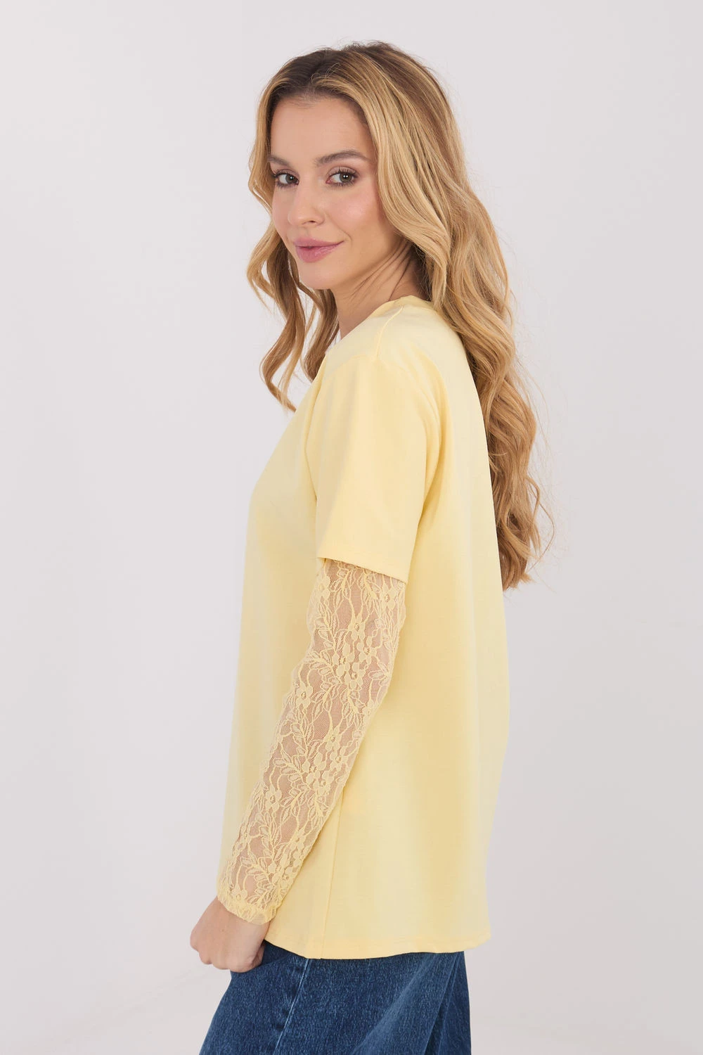Každodenní dámská košile s casual charakterem spojuje jednoduchost s jemným ženským akcentem. Vyrobená z vysoce kvalitní směsi bavlny, nylonu a elastanu je příjemná na dotek, prodyšná a elastická, poskytující pohodlí po celý den. Hladký materiál zdůrazňuje univerzální styl košile, díky čemuž se skvěle hodí do každodenních outfitů. Model má standardní délku a kulatý výstřih, který dodává klasickou eleganci. Rukávy 3/4 vyrobené z jemné krajky přinášejí subtilní, efektní detail, který zvýrazní košili mezi klasickými návrhy. Je to ideální volba pro každý den pro ženy, které oceňují pohodlí spojené s ženským dokončením.