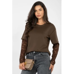 Každodenní dámská blůzka s casual charakterem spojuje jednoduchost s jemným ženským akcentem. Vyrobená z vysoce kvalitní směsi bavlny a elastanu je příjemná na dotek, prodyšná a elastická, poskytující pohodlí při nošení po celý den. Hladký materiál zdůrazňuje univerzální styl blůzky, díky čemuž se skvěle hodí do každodenních outfitů. Model má standardní délku a kulatý výstřih, který dodává klasickou eleganci. Rukávy 3/4 vyrobené z jemné krajky přinášejí subtilní, efektní detail, který vyzdvihuje blůzku mezi klasickými návrhy. Je to ideální volba na každý den pro ženy, které oceňují pohodlí spojené s ženským zakončením.