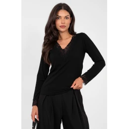 Přizpůsobená každodenní blůza je ideální volbou pro ženy, které ocení pohodlí spojené s decentní elegancí. Model v casual stylu se skvěle hodí jak na každý den, tak do práce, vytvářejíc estetické a ženské outfit. Hladký vzor a proužkovaná struktura materiálu dodávají blůze moderní a zároveň univerzální charakter. Blůza je vyrobena z elastické a příjemné směsi polyesteru a elastanu, co zajišťuje pohodlí a dobrou přiléhavost k postavě. Standardní délka dělá model skvěle sladitelný s kalhotami a sukněmi různých střihů. Stylovým prvkem jsou dlouhé rukávy zakončené jemnou krajkou a výstřih do V lemovaný krajkou, které dodávají celku ženský šarm a lehkost. Absence zapínání zdůrazňuje jednoduchost střihu a pohodlí nošení. Je to blůza, která spojuje každodenní pohodlí s elegantními detaily, ideální do mnoha outfitů.