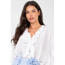 Elegantní každodenní blůza v boho stylu, kombinující pohodlí s ženským, lehce romantickým charakterem. Vyrobená z měkké bavlny, poskytuje pohodlí a volnost pohybu po celý den. Model s hladkým vzorem má klasický, kulatý výstřih s jemným lemováním, který dodává eleganci a jemný šarm. Nafouklý, dlouhý rukáv zdůrazňuje ženský střih a dodává celku moderní, boho vzhled. Zapínání na několik knoflíků vpředu usnadňuje oblékání a představuje decentní dekorativní detail. Standardní délka zaručuje, že blůza bude skvěle vypadat jak v každodenních, tak v kancelářských stylizacích, kombinujíc pohodlí s nadčasovým stylem.