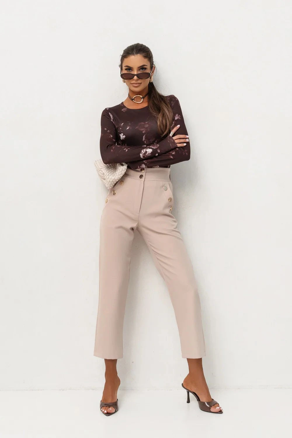 Blůza SHIRA s dlouhým rukávem je ideální volbou pro ženy, které ocení eleganci a pohodlí nošení. Vyrobená z vysoce kvalitních materiálů, tato blůza kombinuje moderní design s nadčasovými motivy. Jemný potisk hnědými květy se skvěle hodí do každého šatníku, dodávají mu ženskost a jemnost. Model je k dispozici v různých velikostech, co umožňuje každé ženě najít pro sebe vhodnou verzi. Blůza SHIRA je vyrobena z materiálů jako je 95% viskóza a 5% elastan, co zaručuje pohodlný dotek a pružnost. Díky tomu se skvěle přizpůsobí siluetě, zdůrazňující její přednosti. Příjemný materiál z ní činí ideální volbu na každý den i na speciální příležitosti. Je také důležité zdůraznit, že blůza SHIRA skvěle ladí s různými kombinacemi. Můžete ji zkombinovat s kalhotami, sukní nebo nosit pod saka. V každém provedení bude vypadat atraktivně a stylově, přitahující pozornost okolí. Nečekejte! Přidejte si blůzu SHIRA do své sbírky a užívejte si její jedinečný styl a pohodlí nošení. Jedná se o produkt, který se jistě stane jedním z oblíbených kousků vašeho šatníku. Objednejte si ji ještě dnes a objevte, jak snadno lze spojit pohodlí, eleganci a módní vzhled!