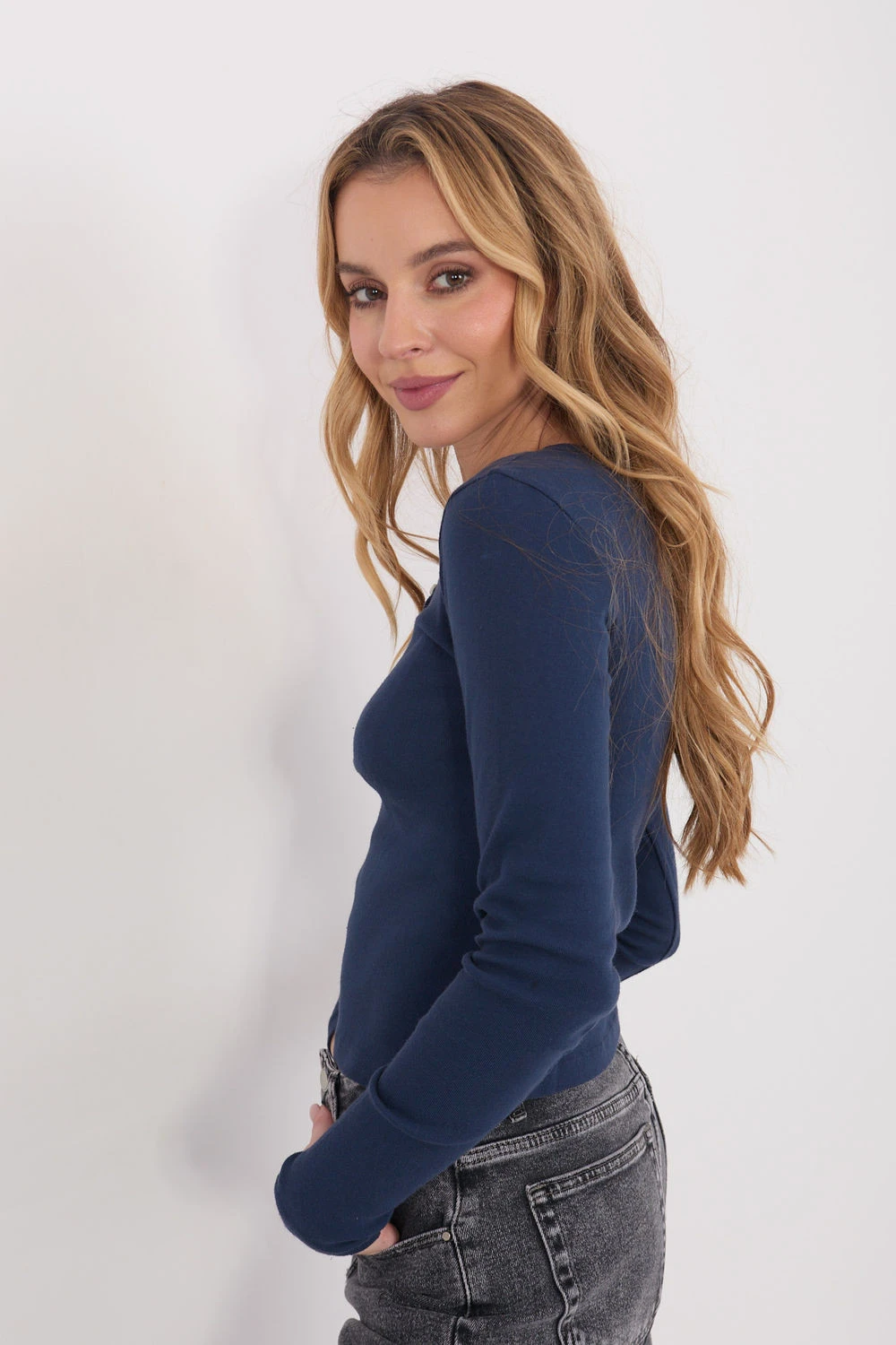 Přizpůsobené dámské triko s krátkou délkou je ideální volbou pro ženy, které ocení pohodlí a nadčasový styl. Model v casualovém stylu se skvěle hodí jak do každodenního života, tak do práce. Hladký vzor jí dodává univerzálnost, díky čemuž se snadno sladí s džíny, látkovými kalhoty nebo sukní. Triko je vyrobeno z vysoce kvalitní bavlny, která zajišťuje pohodlí nošení, prodyšnost a příjemné přizpůsobení se postavě. Má dlouhý rukáv a klasický, kulatý výstřih zapínající se na tři knoflíky, což jí dodává jemnou eleganci a ženský charakter. Je to praktický a stylový základ pro mnoho každodenních outfitů - pohodlný, univerzální a vždy módní.