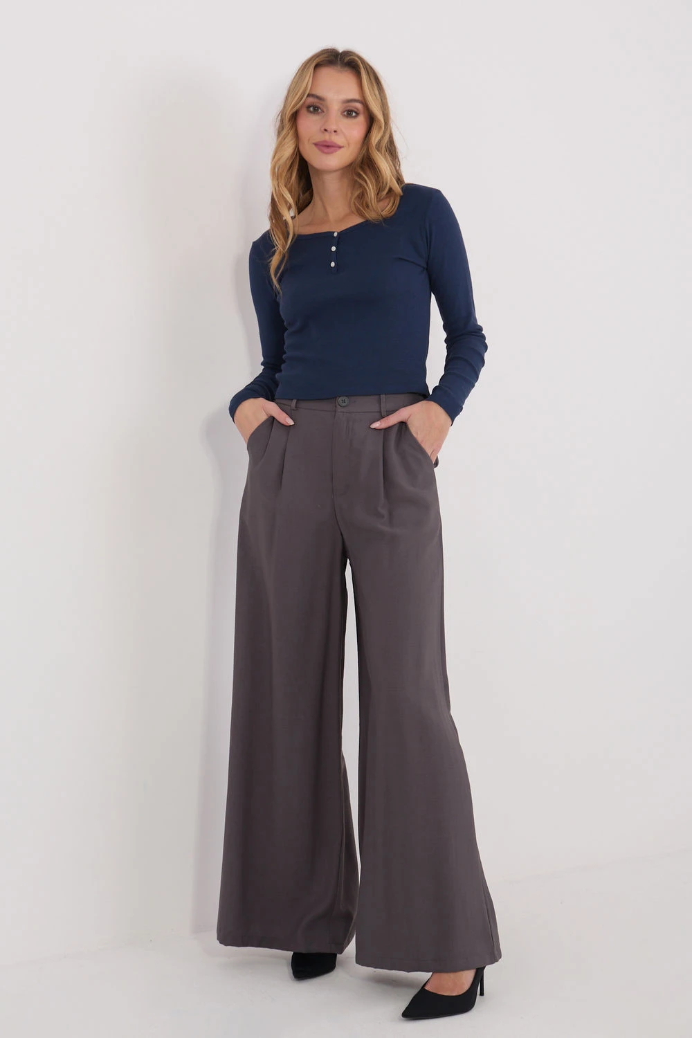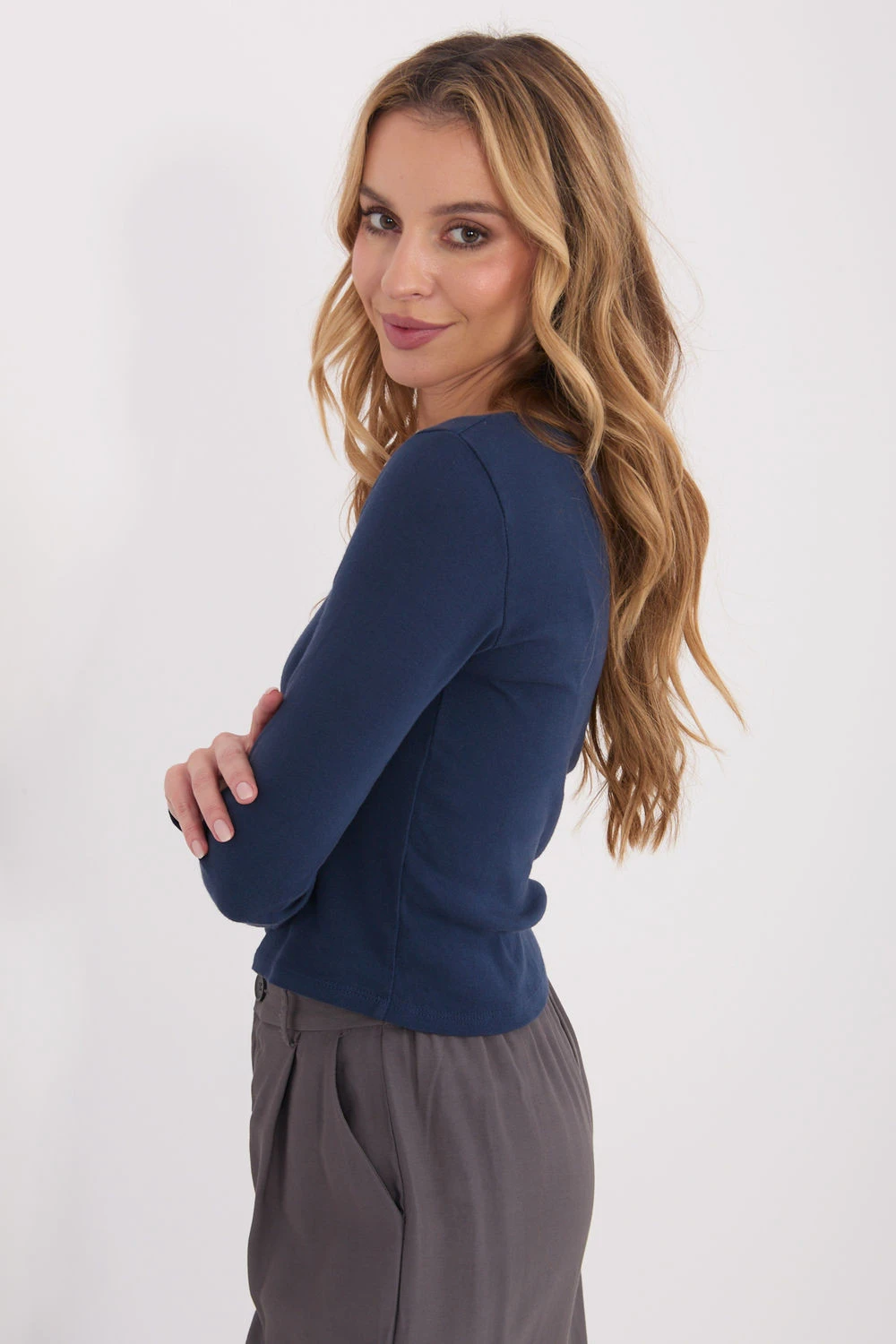 Přizpůsobený dlouhý rukáv je skvělou základnou pro každodenní outfit v ležérním stylu. Krátký střih jemně zdůrazňuje postavu a skvěle ladí s džíny, látkovými kalhotami nebo sukní s vysokým pasem. Tento model se hodí jak do každodenního života, tak do práce, spojuje pohodlí s univerzálním designem. Blůzka je vyrobena z vysoce kvalitní bavlny, která zajišťuje pohodlí, prodyšnost a jemnost na dotek. Hladký vzor jí dodává nadčasový charakter a usnadňuje vytváření různých outfitů. Model má dlouhé rukávy a klasický, kulatý výstřih zapínající se na tři knoflíky. Tento jemný detail dodá celku ženské kouzlo a umožňuje jemně upravit hloubku výstřihu. Jedná se o praktický, stylový a všestranný kousek do každé šatníku.