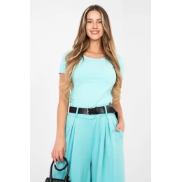 Přizpůsobený tričko s casual charakterem je skvělou základnou pro každodenní stylizace. Vyrobený z vysoce kvalitní směsi bavlny a elastanu poskytuje pohodlí nošení, elasticitu a ideální přizpůsobení postavě. Materiál je měkký, příjemný k pokožce a dobře padne na tělo. Model má standardní délku, krátký rukáv a klasický, kulatý výstřih, což z něj činí mimořádně univerzální a nadčasový kousek. Hladký vzor zdůrazňuje minimalistický styl, a pruhovaná struktura materiálu dodává jemnou fakturu a módní dokončení. Tričko nemá zapínání, díky čemuž je pohodlné a snadno se obléká. Skvěle se hodí do každodenního života, ať už ve spojení s džínami, kraťasy nebo sukní, vytvářející pohodlné a stylové sestavy.