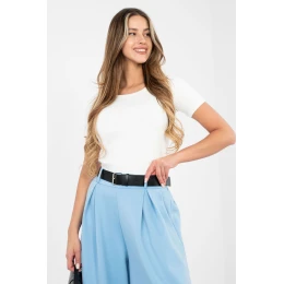 Přizpůsobená košile s casual charakterem je skvělou základnou pro každodenní outfit. Vyrobená z vysoké kvality směsi bavlny a elastanu poskytuje pohodlí, pružnost a ideální padnutí ke křivce. Materiál je měkký, příjemný k pokožce a dobře padne na tělo. Model má standardní délku, krátký rukáv a klasický, kulatý výstřih, což z něj činí mimořádně univerzální a nadčasový kousek. Hladký vzor zdůrazňuje minimalistický styl a pruhovaná struktura materiálu dodává jemnou texturu a módní dokončení. Košile nemá zapínání, díky čemuž je pohodlná a snadno se obléká. Ideální pro každodenní nošení, jak v kombinaci s džínami, šortkami, tak i sukní, vytvářející pohodlné a stylové outfit.