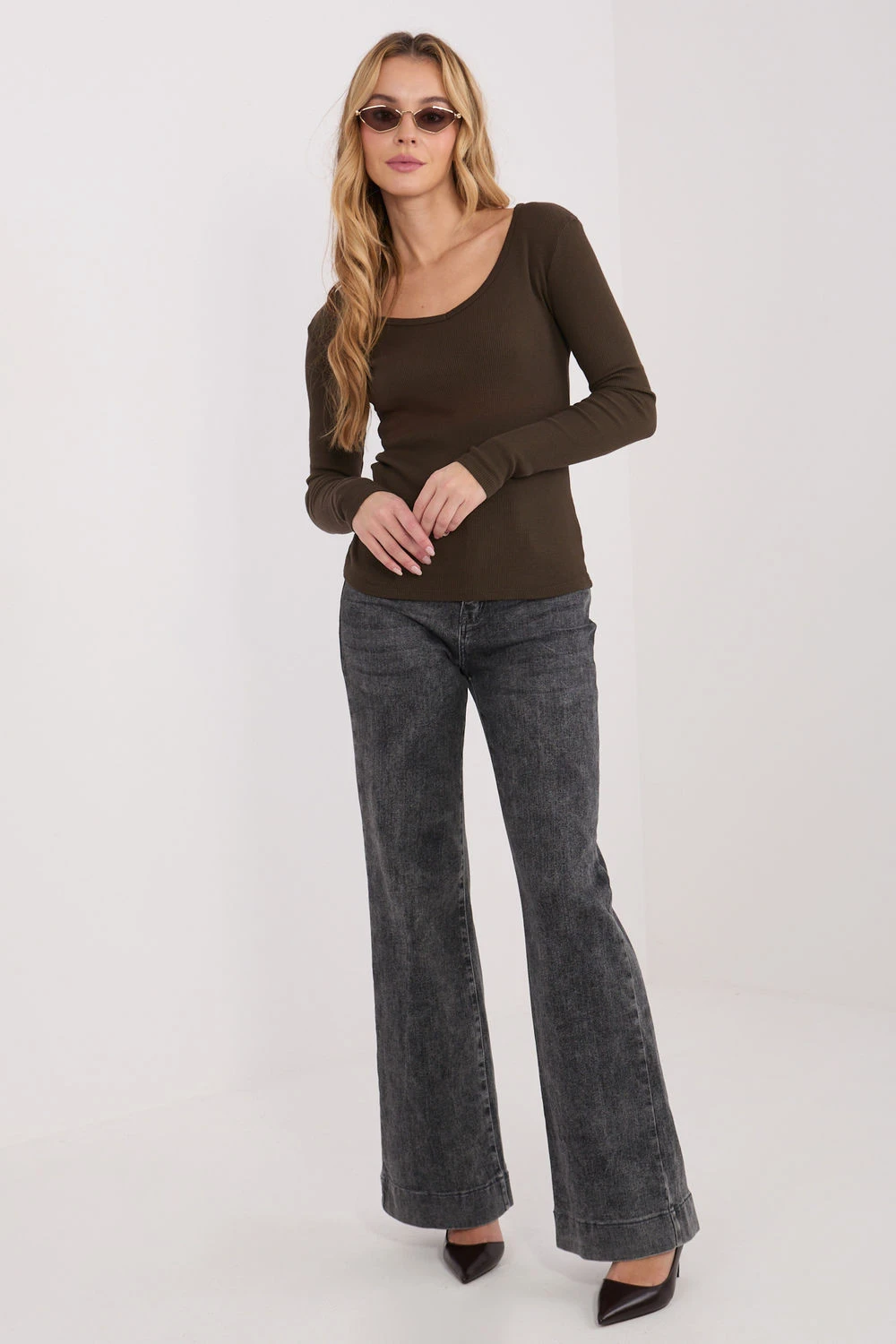 Přizpůsobený dámský longsleeve je univerzálním základem pro mnoho stylizací, jak do každodenního, tak do pracovního prostředí. Udržovaný v casualovém stylu skvěle kombinuje pohodlí s nadčasovou jednoduchostí. Model s standardní délkou je vyroben z pružné, žebrované bavlny, která příjemně obepíná tělo a dokonale se přizpůsobuje siluetě, zdůrazňující její přednosti. Hladký vzor činí z blůzky neuvěřitelně všestranný kousek, snadno kombinovatelný s ostatními kousky šatníku. Dlouhý rukáv poskytuje pohodlí v chladnějších dnech, a výstřih do V decentně zjemňuje krk a dodává ženský charakter. Absence zapínání zdůrazňuje minimalistický, moderní design. Je to praktický a stylový návrh, který se skvěle hodí k džínům, sukní nebo elegantním kalhotám, vytvářející pohodlný a módní vzhled na každou příležitost.