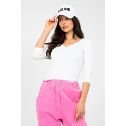 Elegantní a pohodlný každodenní top s přiléhavým střihem, který krásně zdůrazňuje postavu a zároveň poskytuje maximální pohodlí při nošení. Vyrobena z vysoce kvalitní bavlny s přídavkem elastanu, je měkká, příjemná na dotek a jemně elastická, díky čemuž se skvěle přizpůsobuje tělu. Model se standardní délkou rukávu 3/4 je ideální jak na teplejší dny, tak i jako vrstvený prvek stylizace. Top má ženský výstřih na srdíčko vpředu i vzadu, což mu dodává jemnou lehkost a moderní charakter. Hladký vzor zdůrazňuje jeho univerzálnost a usnadňuje jeho kombinování s různými styly. Bez zapínání zvyšuje komfort nošení a dodává celku minimalistický vzhled.