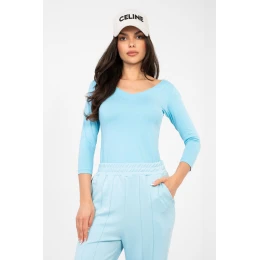 Elegantní a pohodlná každodenní blůza s přiléhavým střihem, která krásně zdůrazňuje postavu a zajišťuje zároveň maximální pohodlí. Vyrobena z vysoce kvalitní bavlny s přídavkem elastanu, je měkká, příjemná k pokožce a jemně elastická, díky čemuž se ideálně přizpůsobuje tělu. Model s standardní délkou a 3/4 rukávem je vhodný jak do teplejších dnů, tak i jako součást vrstvených stylizací. Blůza má ženský výstřih na zádech a vpředu, co jí dodává jemnou lehkost a moderní charakter. Hladký vzor zdůrazňuje její univerzálnost a usnadňuje kombinaci s mnoha styly. Bez zapínání zvyšuje pohodlí nošení a dodává celku minimalistický vzhled.