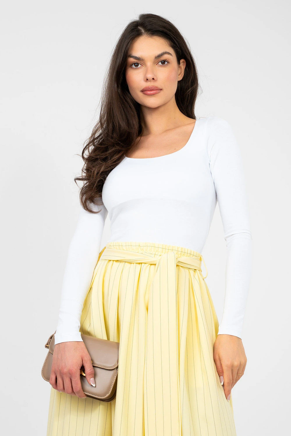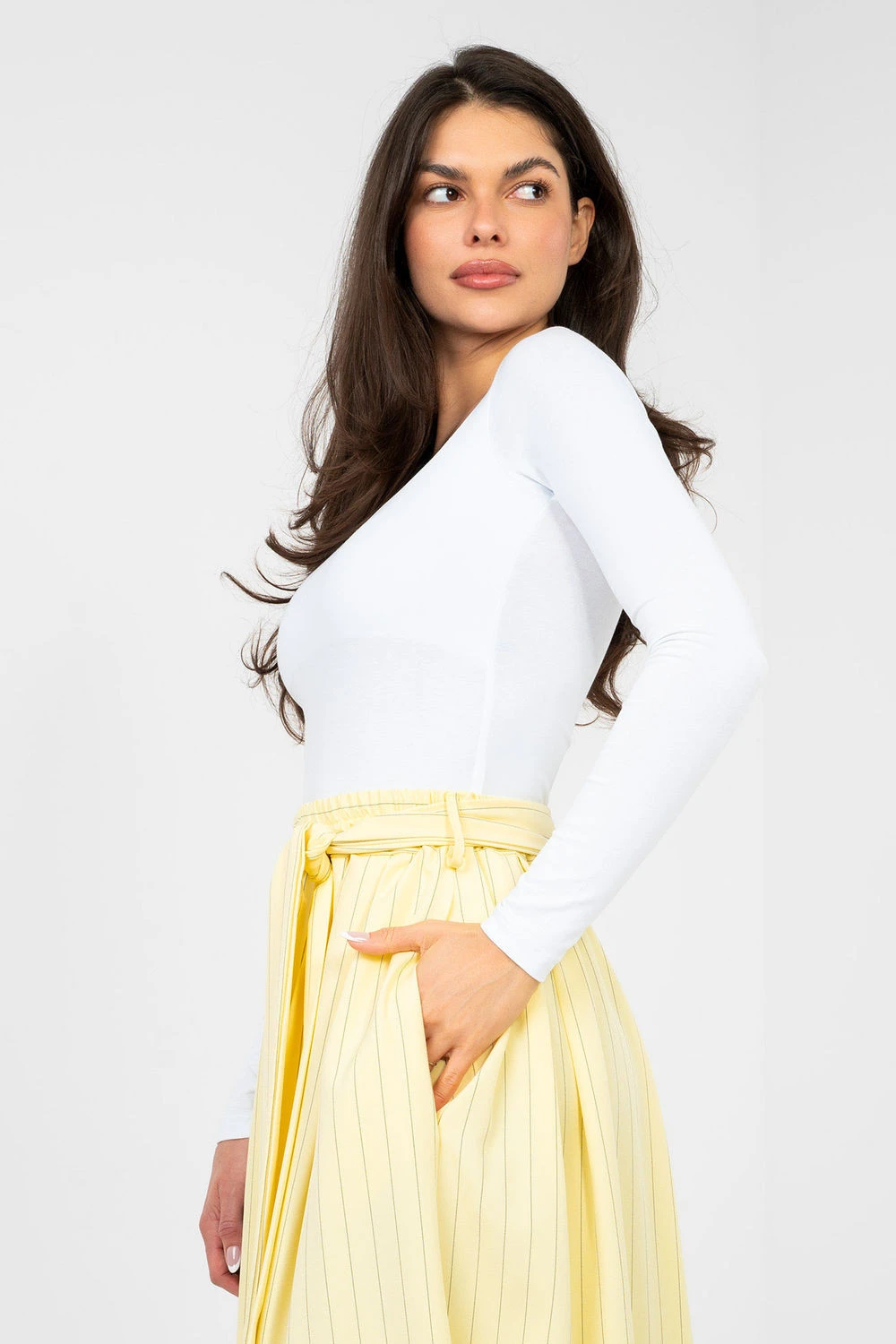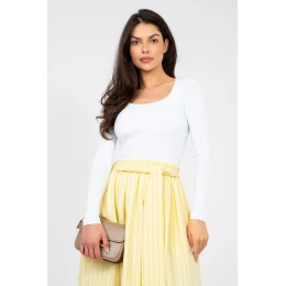 Klasická základní košile s přiléhavým střihem je must-have v každém šatníku. Ideální na každý den, skvěle se hodí do každodenních outfitů, ať už samostatně nebo jako základ pod sako nebo kardigan. Model s standardní délkou a dlouhým rukávem (longsleeve) je vyroben z vysoce kvalitní bavlny s přídavkem elastanu. Tkanina je měkká, prodyšná a elastická, díky čemuž se košile perfektně přizpůsobuje postavě a poskytuje pohodlí po celý den. Čtvercový výstřih decentně zdůrazňuje linii krku a lícních kostí, dodává celku moderní, ženský charakter. Další výhodou je podšívka v oblasti prsou, která zvyšuje pohodlí nošení a zlepšuje estetiku materiálu. Hladký vzor zdůrazňuje univerzálnost modelu, a absenci zapínání zajišťuje jednoduchost a pohodlí při nošení.