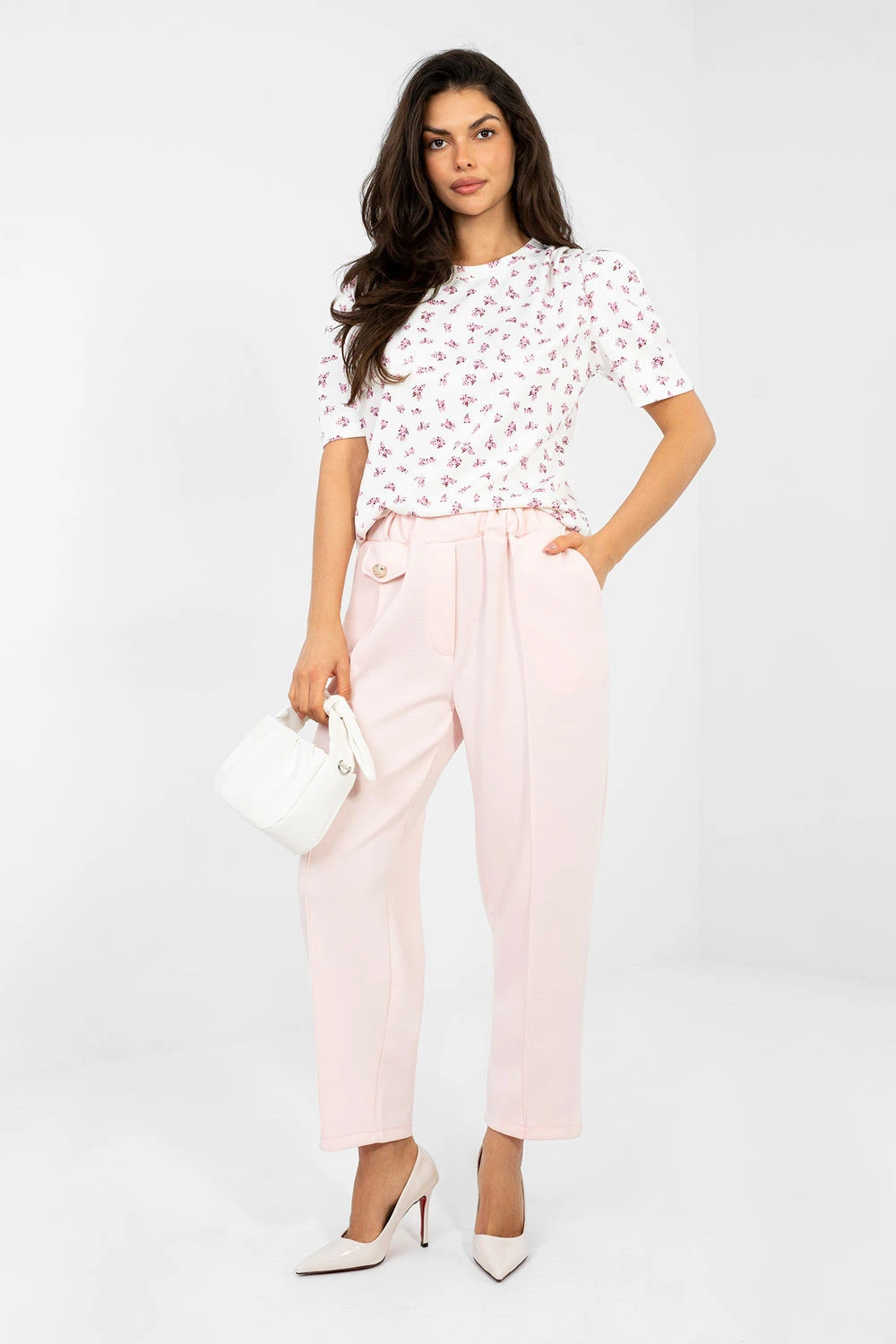 Elegantní každodenní blůzka je ideální kombinací pohodlí a ženského stylu. Skvěle poslouží jak pro každodenní nošení, tak do práce, vytvářejíc stylové a elegantní outfit. Model standardní délky má klasický kulatý výstřih a krátký rukáv, co zajistí pohodlné nošení po celý den. Květinový potisk dodává celku jemný, svěží charakter, zdůrazňující ženský styl. Ozdobné mašle přidávají blůze eleganci a jemně tvarují siluetu. Vyrobená z kombinace polyesteru, viskózy a elastanu spojuje odolnost s měkkostí a pružností materiálu, zajišťující pohodlí a volnost pohybu. Jedná se o univerzální nabídku, která skvěle ladí jak s elegantními kalhotami, tak s sukní nebo klasickými džínsy.
