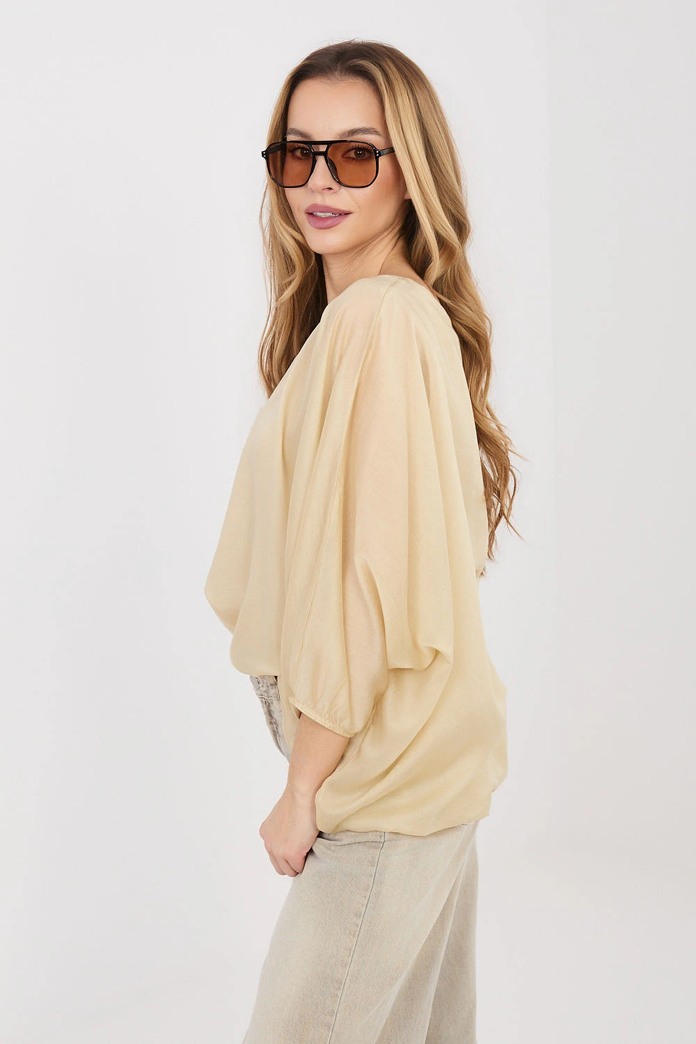 Elegantní blůzka standardní délky, ideální do práce a na významné příležitosti, kombinující stylový vzhled s pohodlím nošení. Model vyrobený z kombinace tencelu a polyesteru poskytuje příjemnou měkkost a odolnost materiálu. Blůzka má klasický, kulatý výstřih a 3/4 rukávy, hladký vzor jí dodává univerzální charakter. Další výhodou je podšívka v střední části, která decentně modeluje postavu a zajistí elegantní uspořádání pod oblečením. Ideální jak do kancelářských outfitů, tak na formální události.