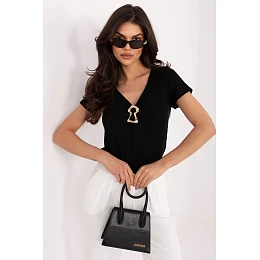 Elegantní, přizpůsobená dámská halenka je univerzální nabídkou, která se skvěle hodí jak do každodenního nošení do práce, tak i na společenské události či večírky. Její hladký vzor dodává nadčasový charakter a usnadňuje tvorbu stylových kombinací. Model vyrobený z kombinace viskózy a elastanu zaručuje pohodlí nošení, měkkost a pružnost, díky čemuž se halenka ideálně přizpůsobí postavě. Standardní délka a krátký rukáv z ní dělají praktický a pohodlný kousek na každodenní nošení. Výstřih do V s kovovým ozdobením dodává celku eleganci a představuje decentní, přitažlivý detail. Bez zapínání zdůrazňuje minimalistický charakter modelu a zvyšuje pohodlí nošení. Jedná se o skvělou volbu pro ženy, které si cení kombinace klasiky, pohodlí a moderních akcentů.