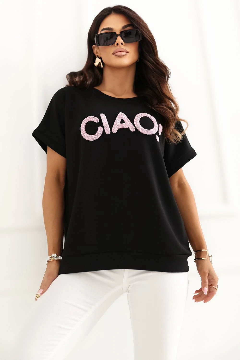Každodenní blůzka s univerzálním charakterem, která skvěle zapadne do mnoha stylizací. Model se vyznačuje kontrastním nápisem na přední straně, který dodává celku moderní a uvolněný styl. Vyrobená z příjemné směsi viskózy a elastanu, poskytuje pohodlné nošení a jemné přizpůsobení postavě. Standardní délka a krátký rukáv z ní dělají skvělou volbu na teplejší dny nebo jako základní kousek pod jiné kousky oblečení. Má klasický, kulatý výstřih a nezapíná se, co dodatečně zdůrazňuje její pohodlný, ležérní charakter.