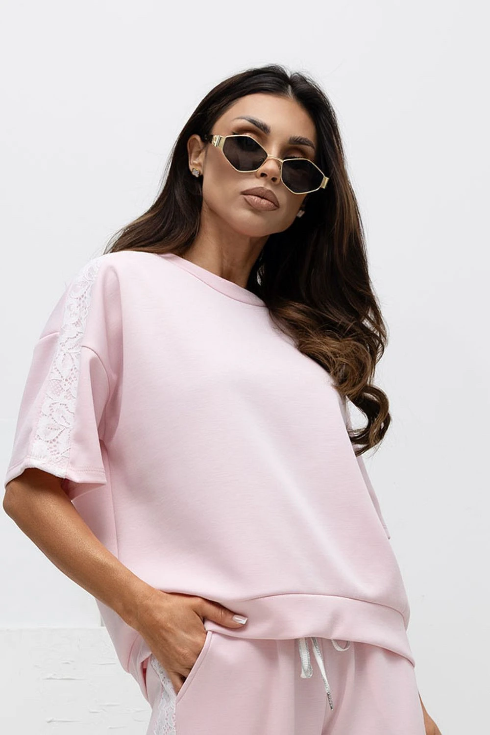 Dámský top s univerzálním charakterem je ideální volbou pro každodenní nošení a práci v méně formálním stylu. Jeho minimalistický, hladký design umožňuje snadné kombinování s mnoha styly, jak s džínami, tak s elegantními kalhotami nebo sukní. Model s standardní délkou a krátkým rukávem poskytuje pohodlí a volnost pohybu, a decentní proužky z krajky na rukávech dodávají celku jemný ženský akcent. Kulatý výstřih zdůrazňuje klasický charakter topu a dělá jej působivým a nadčasovým. Vyrobený z vysoké kvality směsi polyesteru, viskózy a elastanu je top příjemný na dotek, elastický a dobře padne na postavě. Bez zapínání zvyšuje pohodlí nošení a dodává mu jednoduchý, moderní tvar. Jedná se o praktický a stylový kousek do šatníku, který se hodí do mnoha každodenních situací.