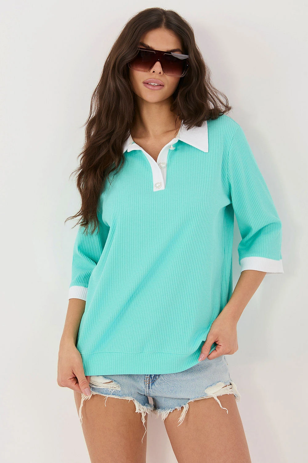 Každodenní košile s klasickým, hladkým designem je univerzální nabídkou, která se skvěle hodí do mnoha stylizací. Vyrobená z vysoce kvalitní bavlny s přídavkem elastanu poskytuje pohodlí, prodyšnost a pružnost, díky čemuž se skvěle přizpůsobuje postavě. Materiál s pruhovanou strukturou dodává celku moderní charakter a jemnou texturu. Model má rukáv 3/4 a límeček, který přidává eleganci a dělá košili skvělou volbou jak do každodenních, tak poloformálních outfitů. Zapínání na tři knoflíky zdůrazňuje praktický charakter modelu a umožňuje regulaci výstřihu. Standardní délka zajišťuje, že košile dobře padne na postavě a hodí se k různým kouskům šatníku. Je to pohodlná a stylová nabídka na každý den.