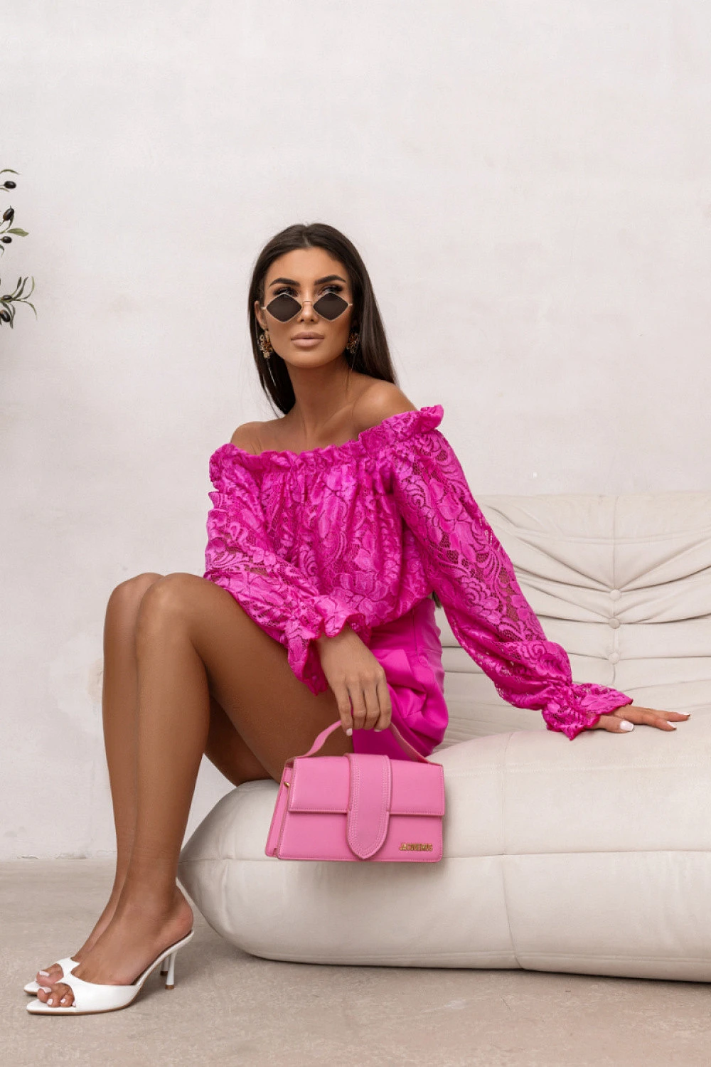 Blůzka hiszpánka MIA Fuksja je nabídkou pro ženy, které ocení eleganci spojenou s ženským pohodlím. Vyrobená z vysoce kvalitního pleteného materiálu kombinuje jemnost krajky s pohodlím pružné látky, díky čemuž se skvěle hodí jak do každodenního nošení, tak i na zvláštní příležitosti. Design blůzky se vyznačuje klasickým střihem hispánky s odkrytými rameny a decentním volánem, který dodává lehkost a romantický charakter. Intenzivní fuksjová barva přitahuje pozornost, a univerzální střih umožňuje snadné kombinování s různými kousky oblečení, od džínů po elegantní sukně. Materiál, ze kterého je blůzka vyrobena, je vysoce kvalitní směs 70 % viskózy a 30 % elastanu. Tento složení zaručuje jemnost, pohodlí nošení a pružnost, což se projevuje v přizpůsobení se postavě a volnosti pohybu. Krajka použitá jako detail zdůrazňuje ženskost bez ztráty funkčnosti oblečení. Délka uvedená v tabulce je měřena od podpaží.