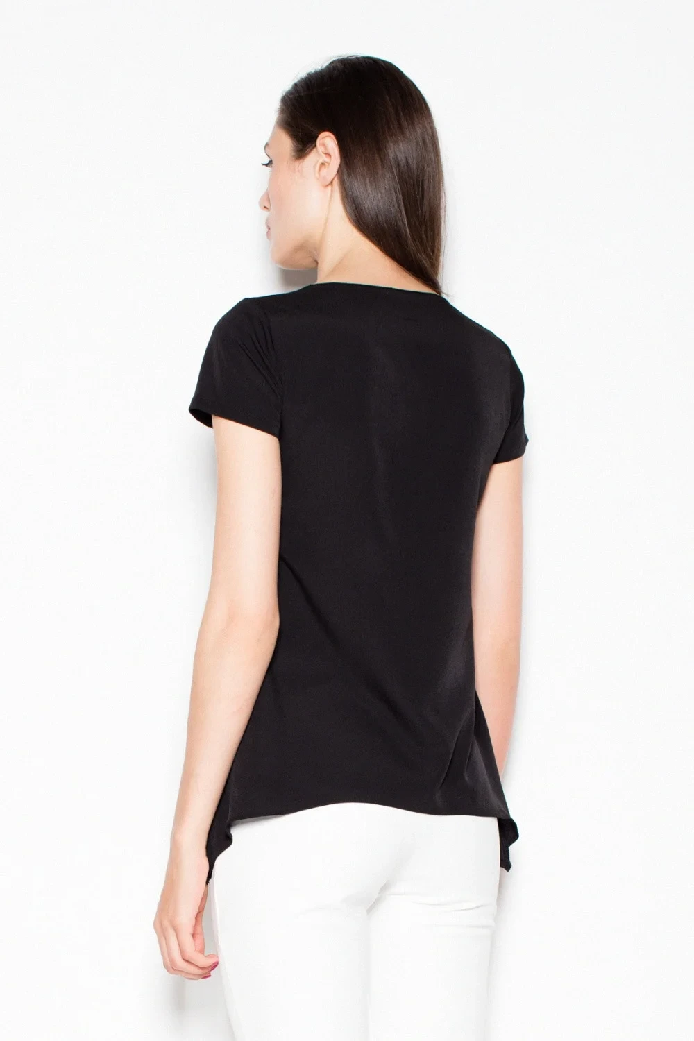 Jednoduchá halenka s prodlouženými boky. Vyrobeno z lehkého a vzdušného materiálu. Ideálně se hodí k těsným kalhotám.