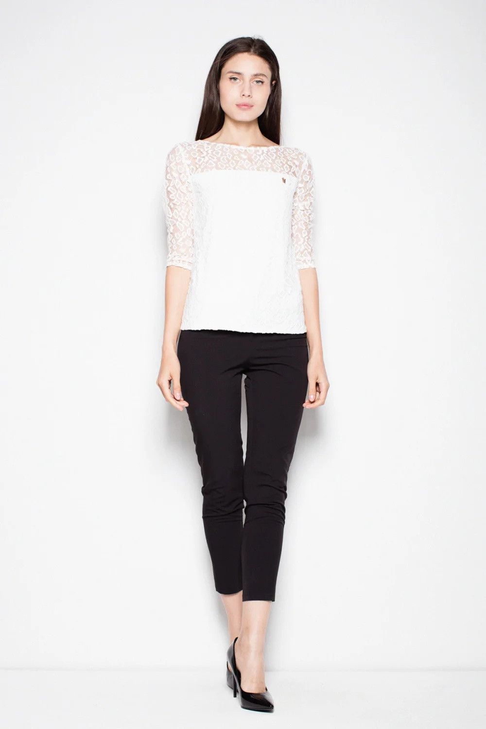 Elegantní halenka s 3/4 rukávy a průhledným horním dílem v charakteristických skvrnách. Skvěle se hodí k jakémukoli oblečení.