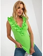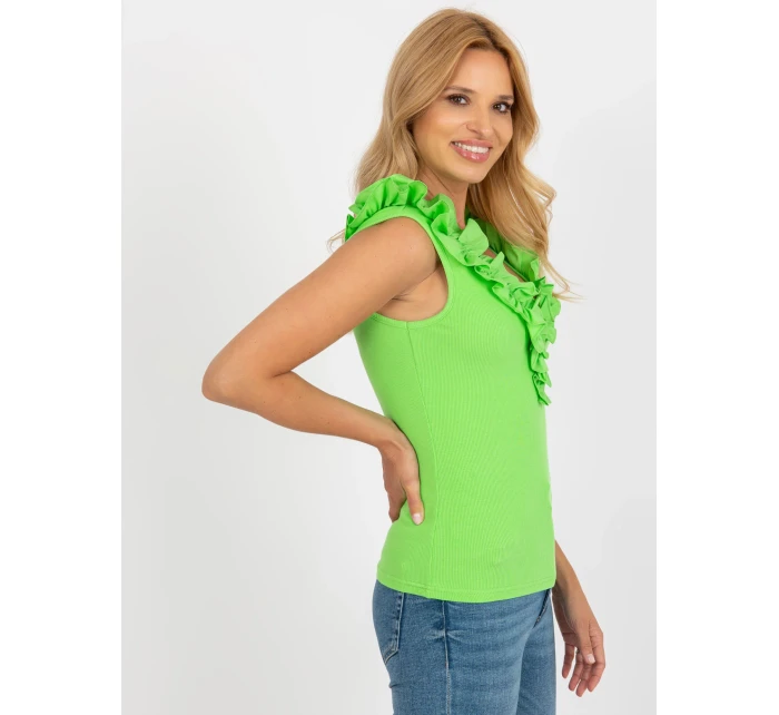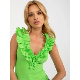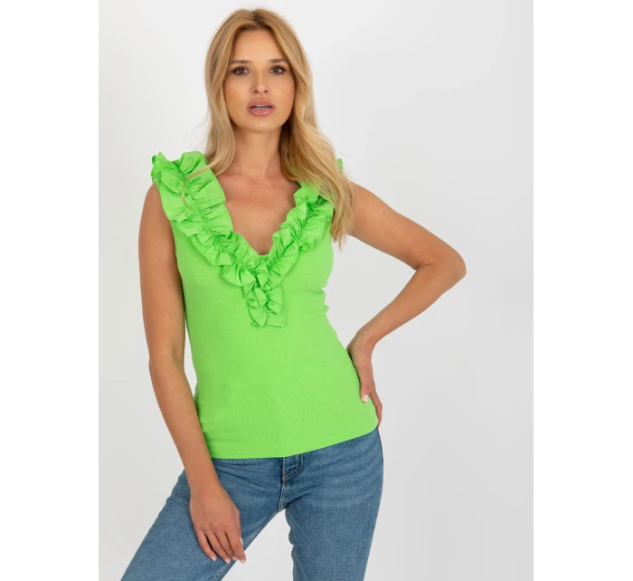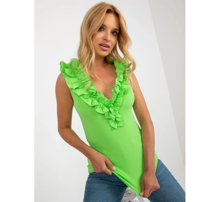 Světle zelený žebrovaný top s volánky .