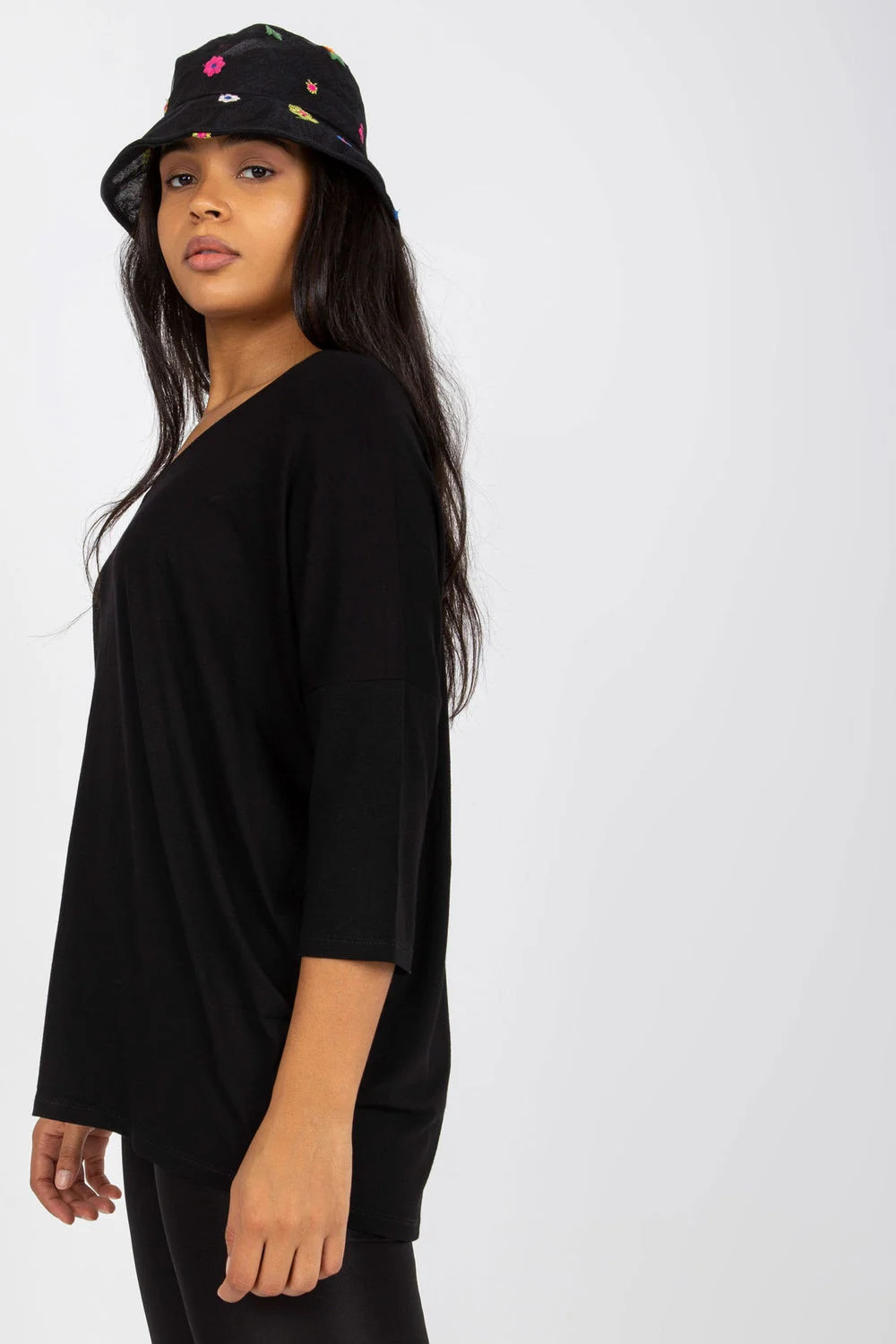 Halenka plus size s 3/4 rukávy a srdíčkovým výstřihem.