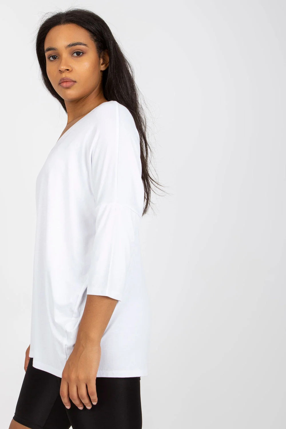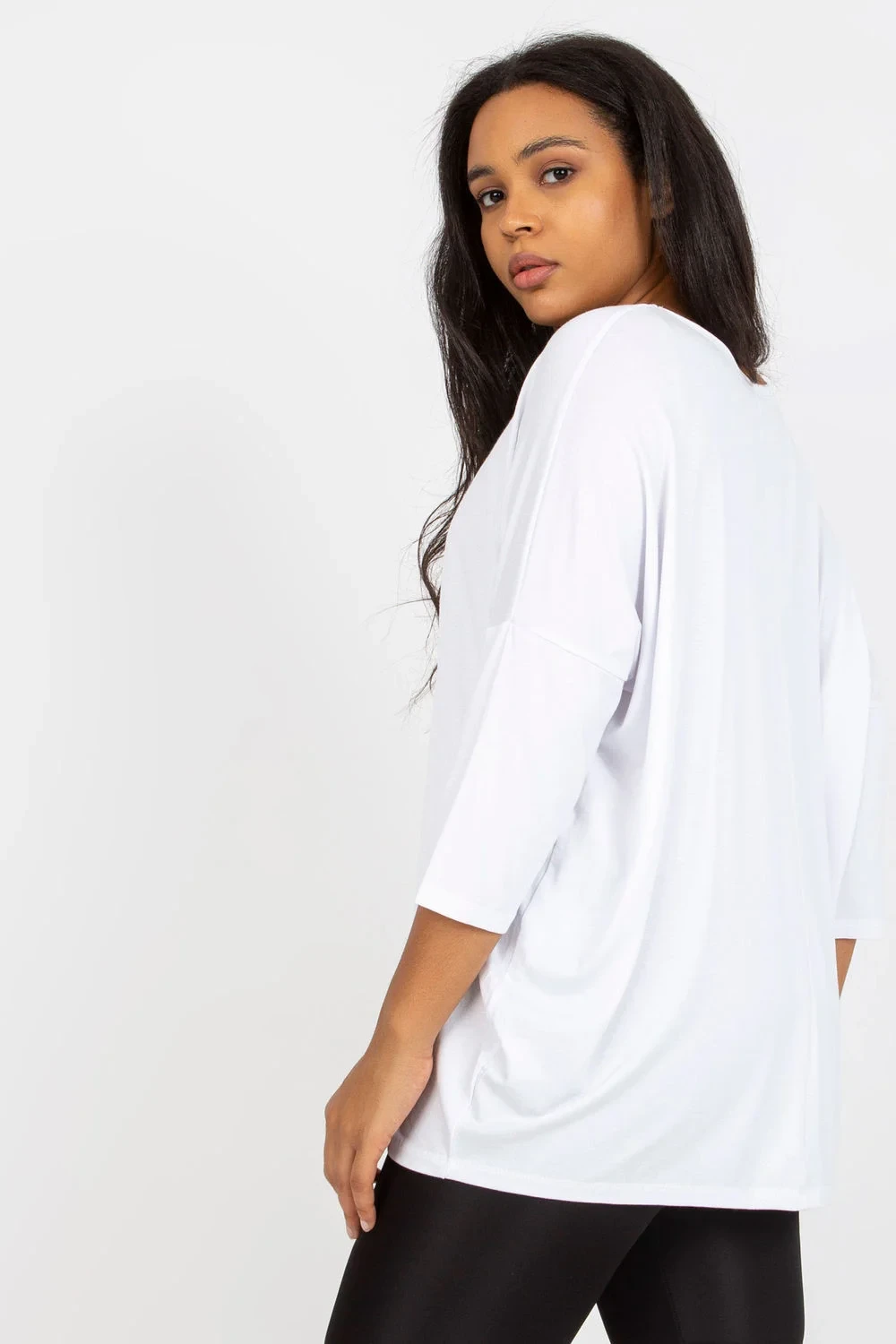 Halenka plus size s 3/4 rukávy a srdíčkovým výstřihem.