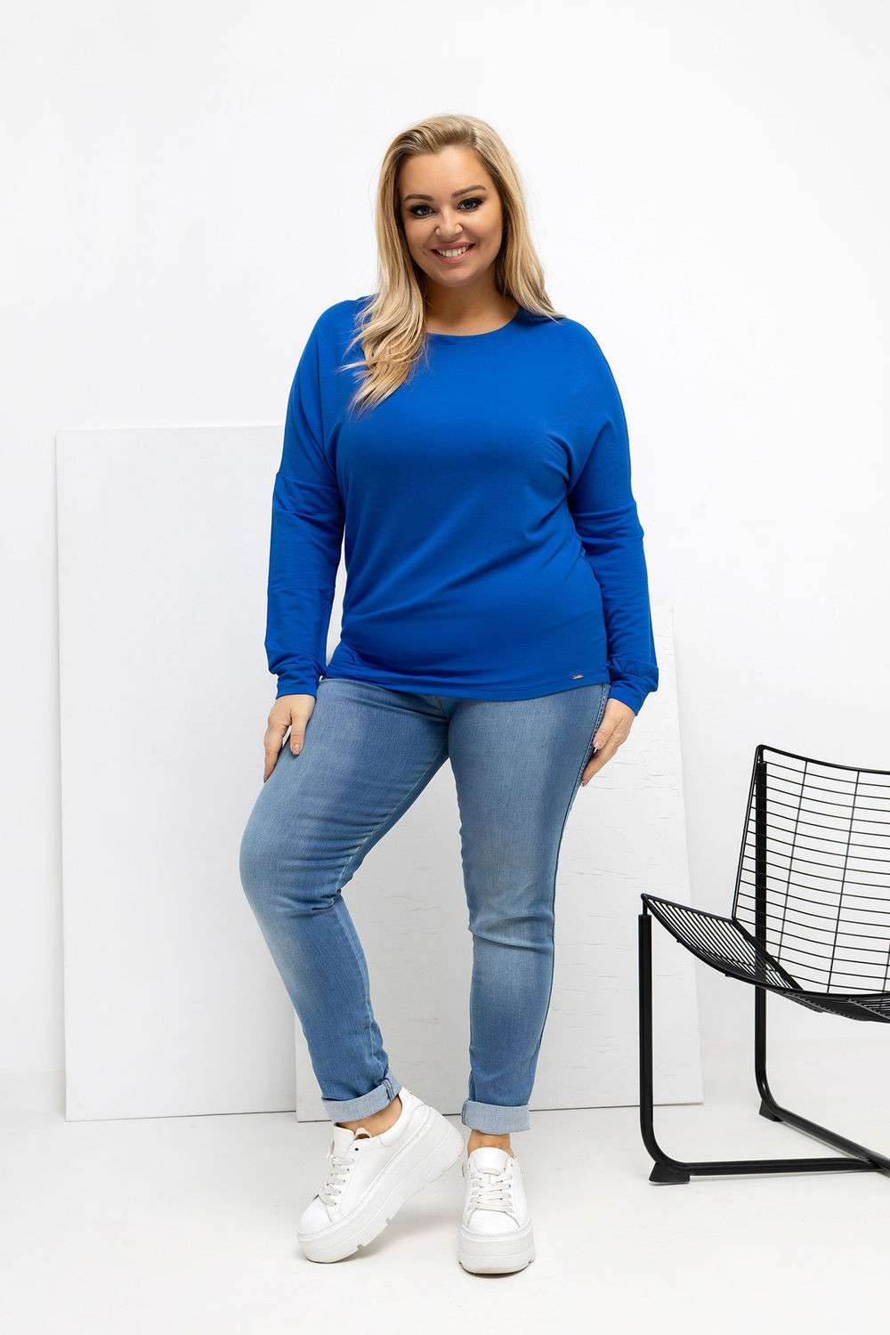 Blůza plus size s klasickým, kulatým výstřihem, navržená s ohledem na pohodlí a každodenní nošení. Model v casual stylu, ideální pro každodenní příležitosti do práce, pro procházky nebo setkání v neformálním kruhu. Hladký vzor dělá blůzu univerzální a snadnou k stylingu. Vyrobená z vysoce kvalitního mikro modálu s přídavkem elastanu, materiál je mimořádně měkký, lehký a pružný, díky čemuž skvěle padne k postavě, neomezujíc pohyby. Standardní délka a dlouhý rukáv zajišťují pohodlné nošení po celý den. Bez zapínání zdůrazňuje jednoduchý, pohodlný střih. Je to skvělá základna pro mnoho každodenních outfitů jak s džíny, tak s sukni.