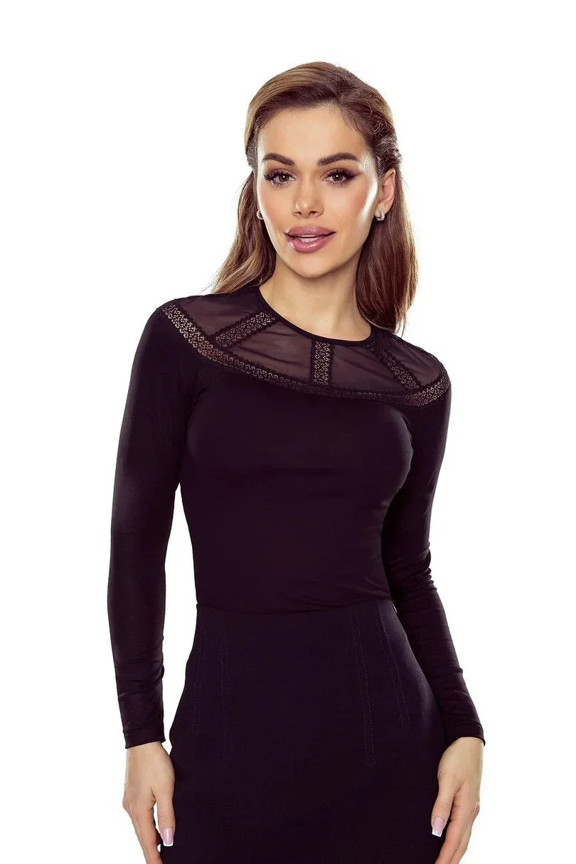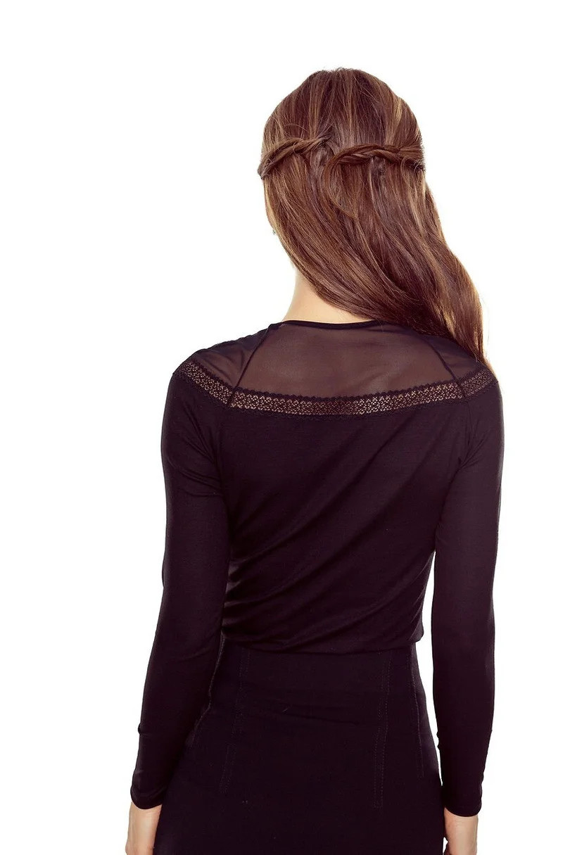 Dámská viskózová halenka s dlouhými rukávy, góra lemovaná jemnou síťovinou.