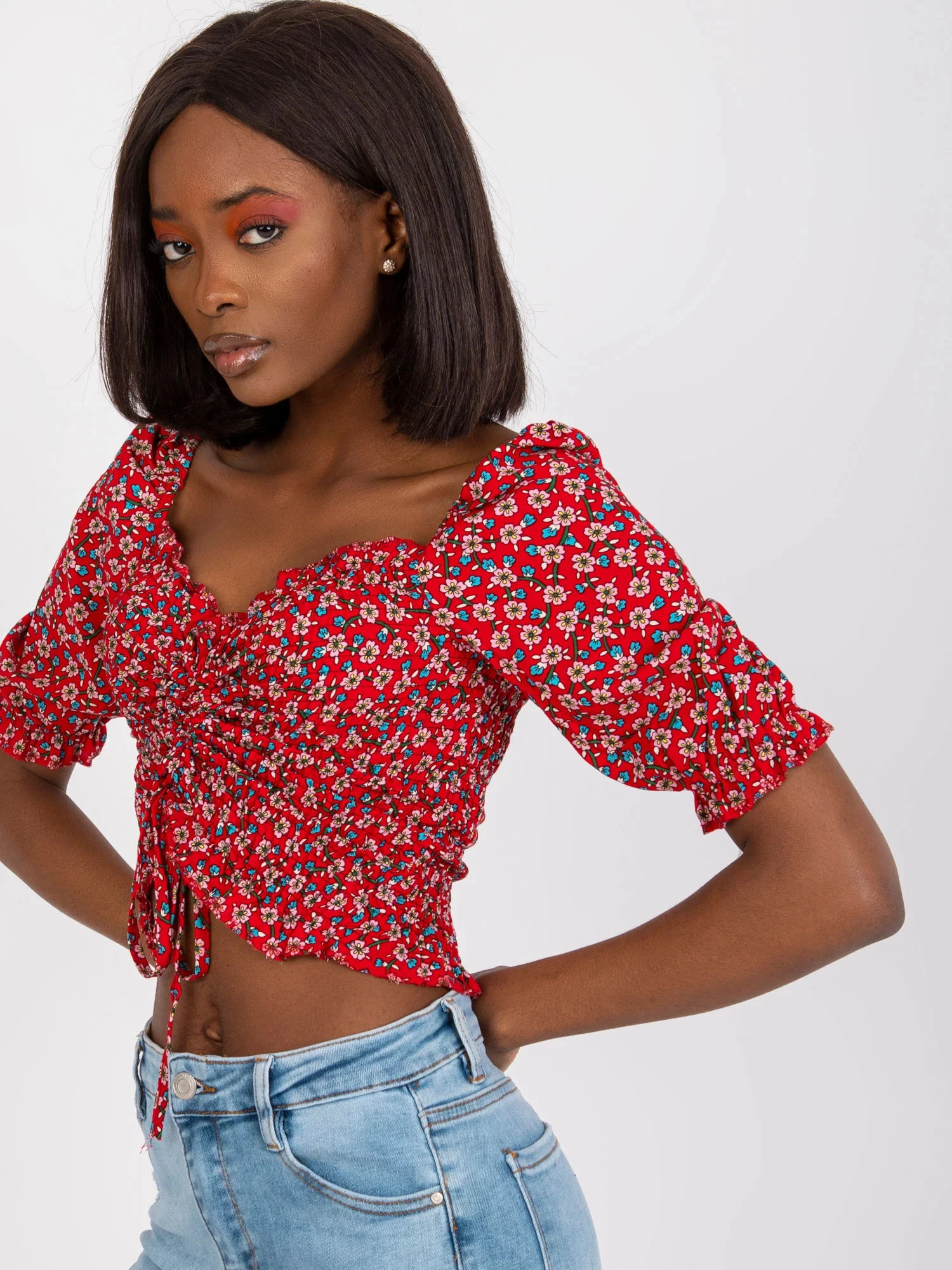 Modelka má na sobě velikost S. Míry modelky: výška 162 cm, prsa 80 cm, pas 63 cm, boky 80 cm.