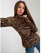 Světle béžová a černá velurová halenka s potiskem od značky RUE PARIS .