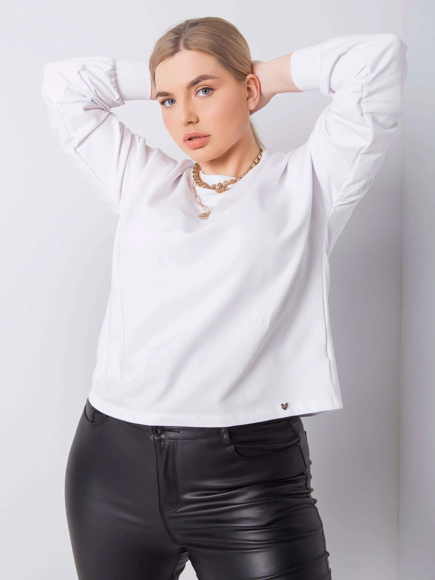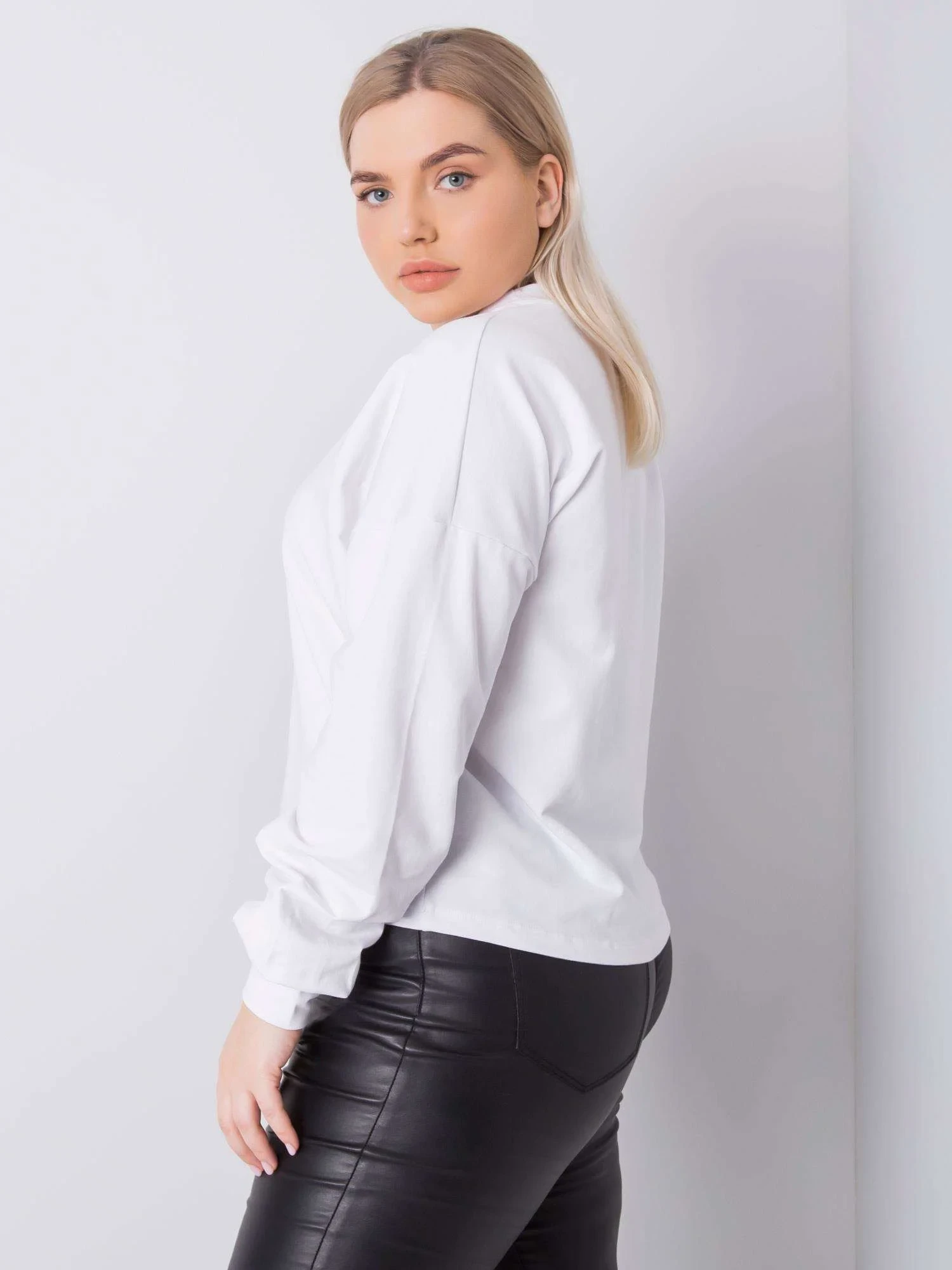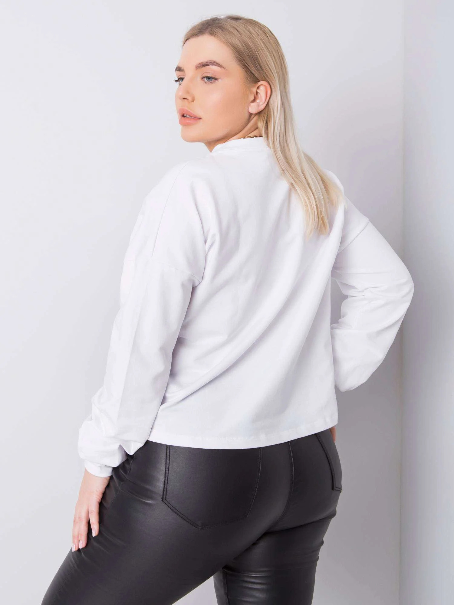 Bílá hladká mikina plus size.