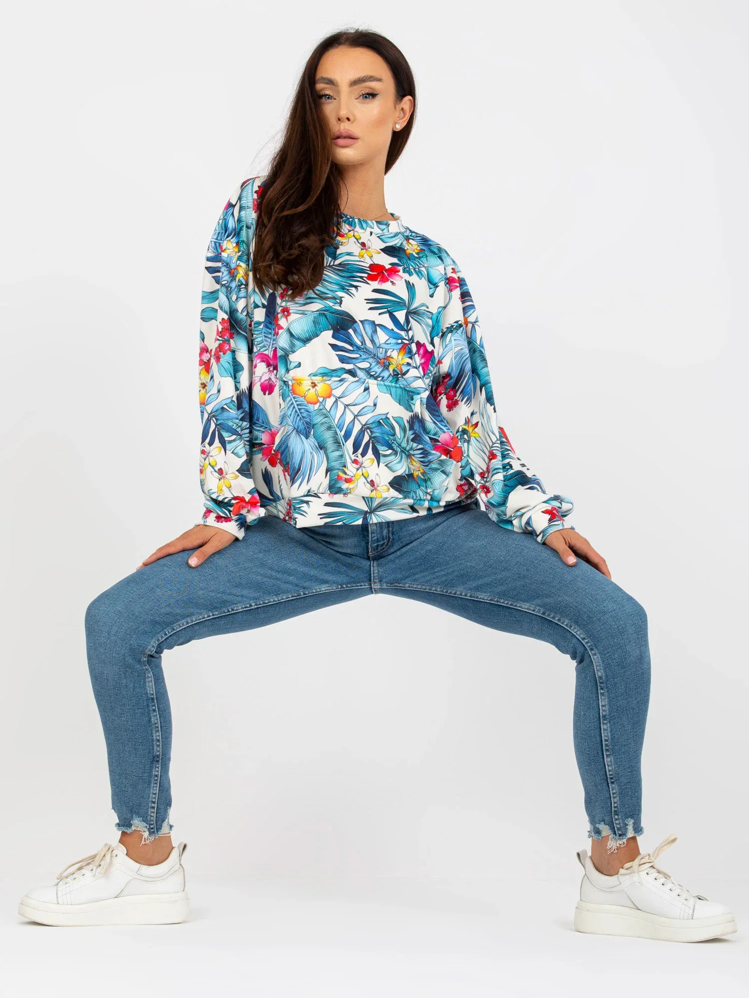Modelka má na sobě velikost S/M. Míry modelky: výška 171 cm, poprsí 84 cm, pas 60 cm, boky 88 cm.