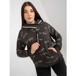 Khaki dámská mikina plus size s kapucí a potiskem .