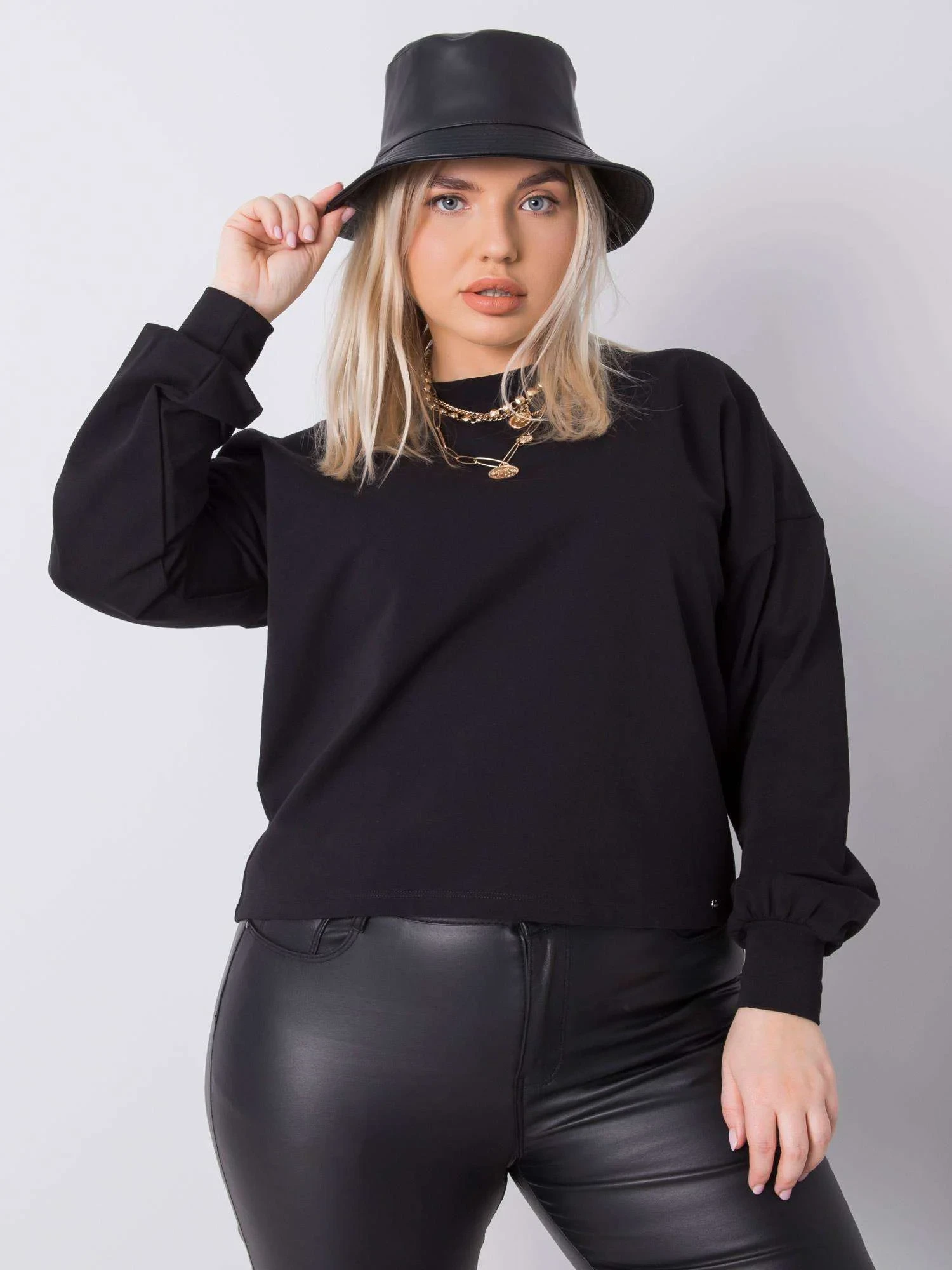 Černá hladká mikina plus size.