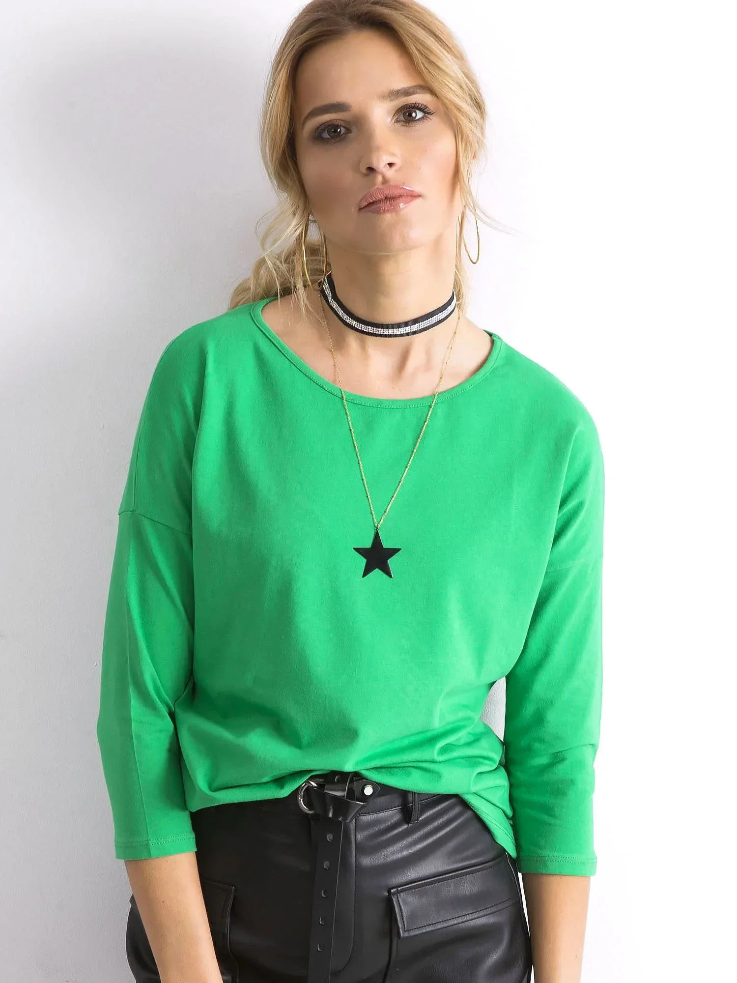Zelená halenka April. Bavlněná dámská halenka s 3/4 rukávy je skutečnou nezbytností v šatníku každé ženy, která má ráda nadčasové a pohodlné oblečení. Takové modely umožňují vytvářet množství každodenních vzhledů ve sportovním i elegantnějším stylu. Hodí se k nim téměř každé jiné oblečení a charakter celého outfitu lze upravit správnými doplňky a líčením. Tato dámská bavlněná halenka má ženský výstřih, módní 3/4 rukávy a volnější střih, který krásně sedí na postavě a pohodlně se nosí. Halenka je vyrobena z vysoce kvalitních materiálů s vysokým podílem čisté bavlny. Díky tomu je prodyšná a příjemná na dotek, a proto poskytuje tolik pohodlí při každodenním nošení. Taková halenka s 3/4 rukávem vypadá skvěle v kombinaci s našimi džínovými kalhotami nebo sukněmi.