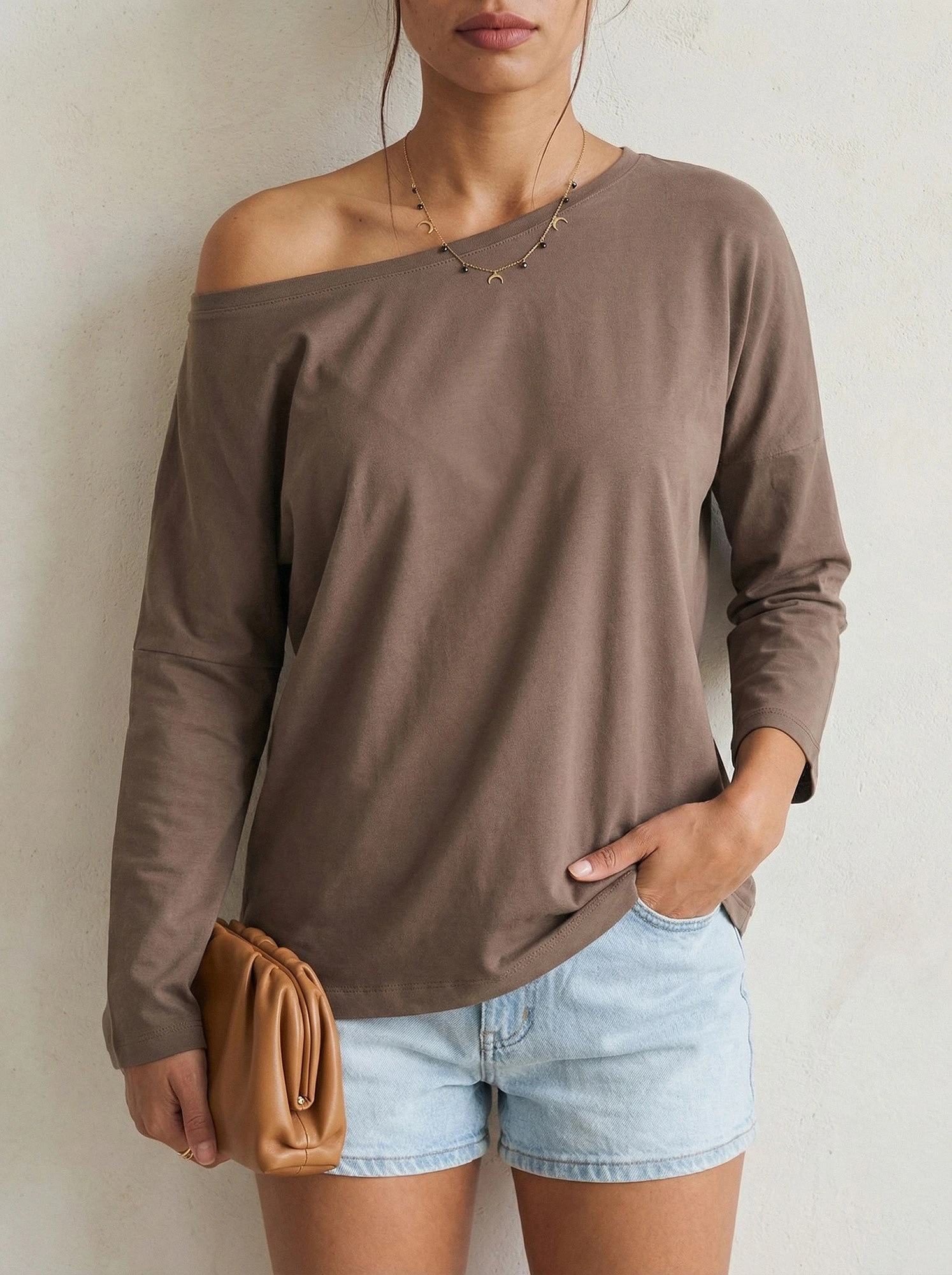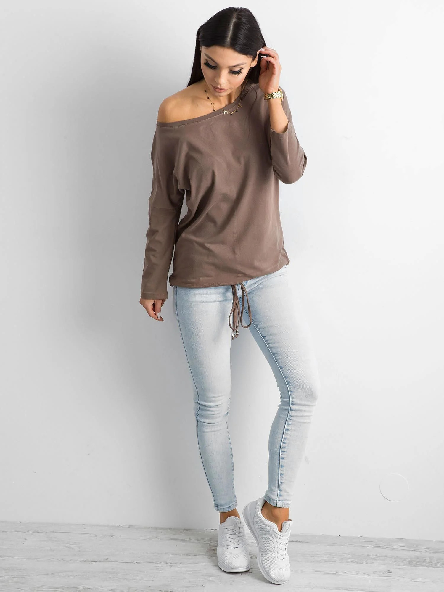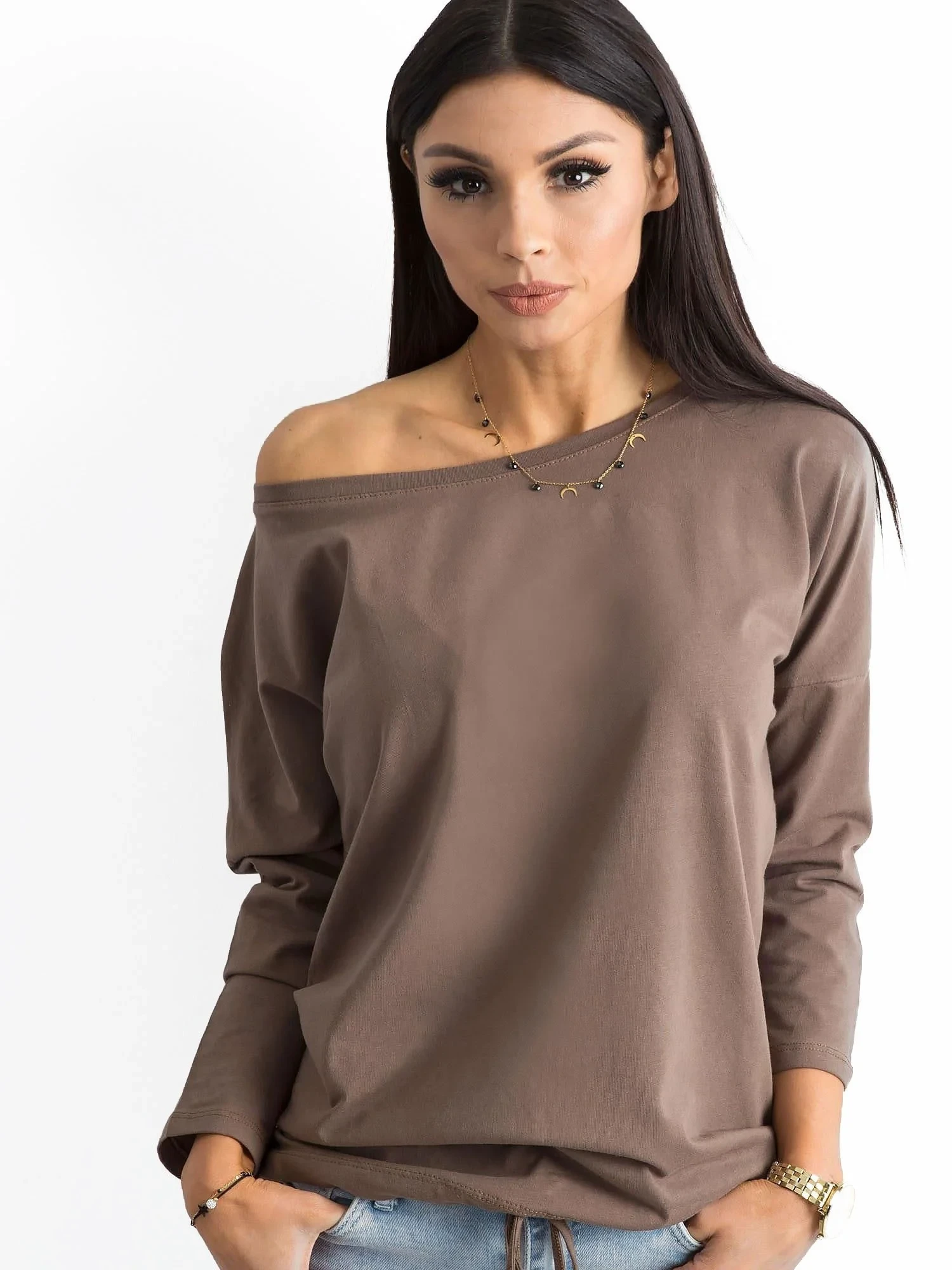 Brązowa bluzka Fiona. Bawełniane bluzki damskie z naszego sklepu internetowego pomogą stworzyć Ci udane stylizacje na co dzień, niezależnie od okazji. Ten model wykonano z oddychającej bawełny z dodatkiem elastycznej domieszki syntetycznej, dzięki czemu bluzka jest przyjemna w dotyku i miękka, a także ładnie układa się na sylwetce. Można nosić ją o każdej porze roku ze względu na uniwersalny design i dłuższe rękawy. Doskonale sprawdzi się zatem jako dodatek do stroju w ciepły dzień oraz jako dodatkowa warstwa odzieży w chłodne miesiące. Dopasuj do niej modne spodnie dżinsowe, wygodne dresy albo kobiecą spódniczkę i stwórz z jej pomocą minimalistyczną stylizację pełną klasy i wdzięku. Bluzka basic z tego modelu dostępna jest w naszym sklepie internetowym w wielu ciekawych kolorach do wyboru, dlatego każda z Was znajdzie na pewno swój ulubiony.