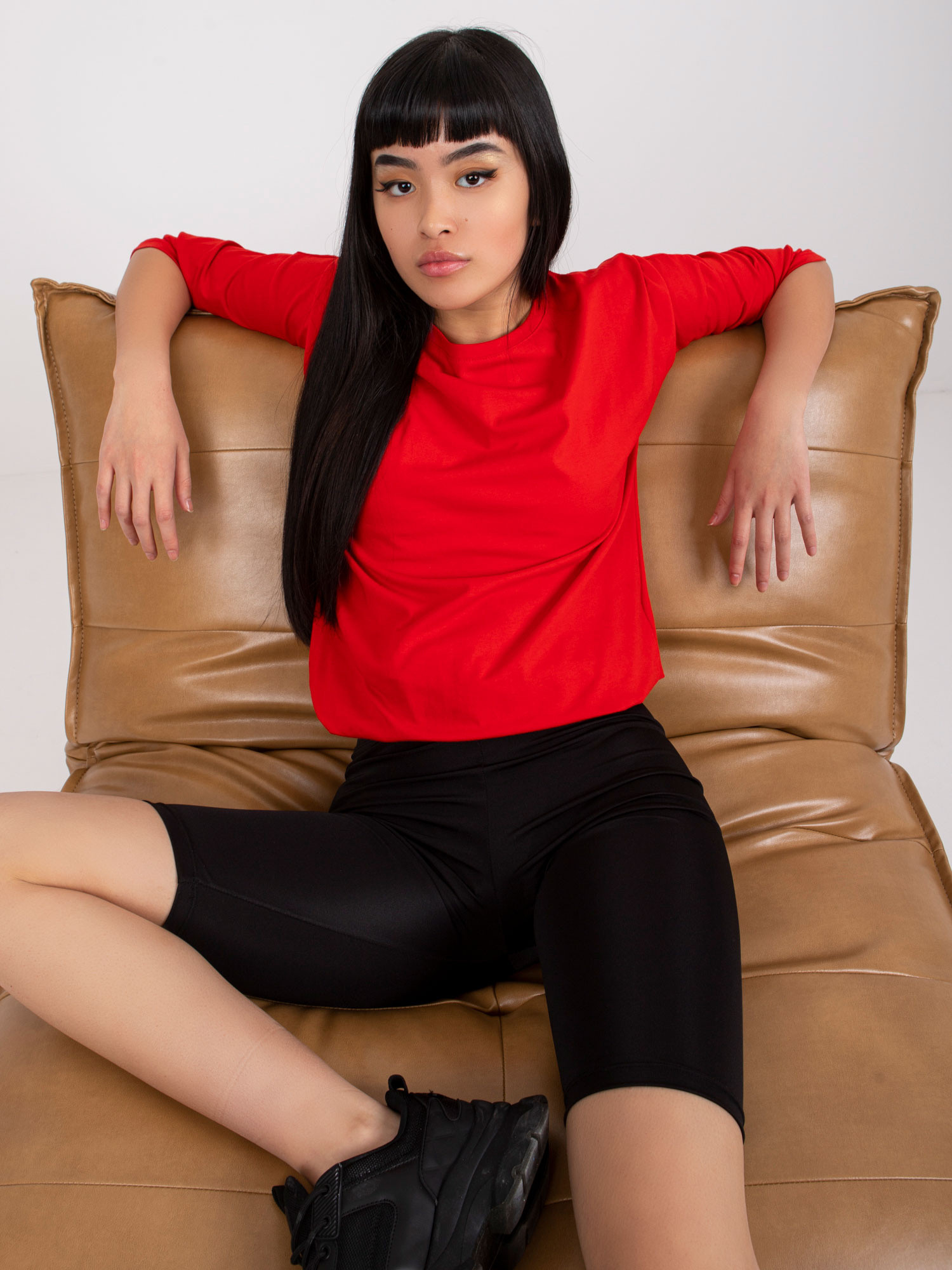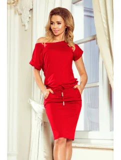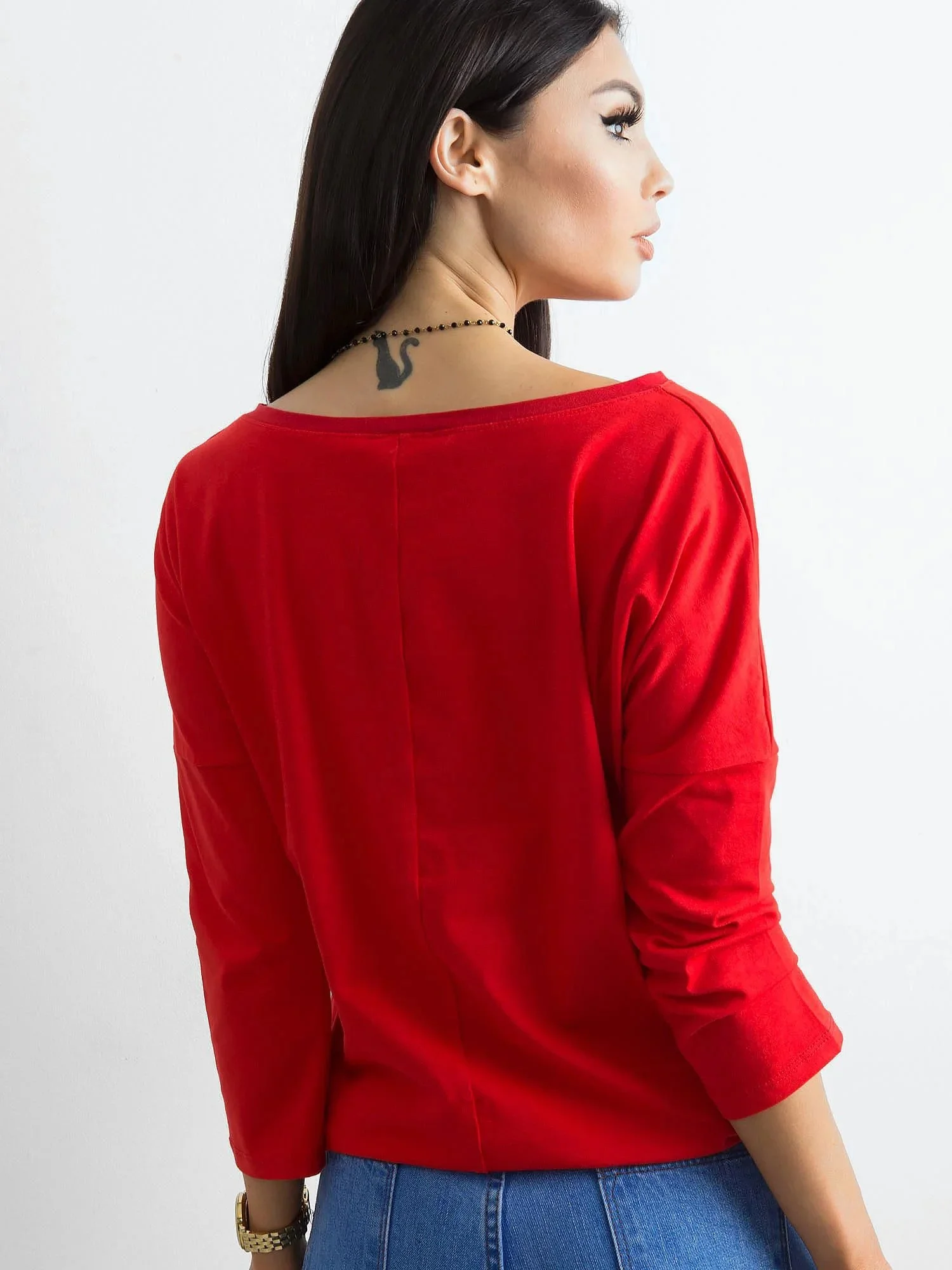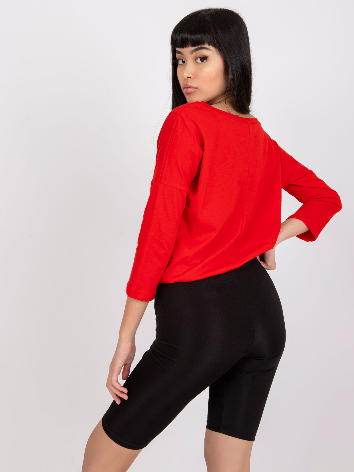 Czerwona bluzka Fiona. Gładka bluzka z bawełny jest wspaniałym uzupełnieniem każdej damskiej garderoby. Pozwala bowiem łatwo i szybko ubrać się na każdą sytuację, w której nie musimy prezentować się elegancko czy formalnie. Mimo to ta bluzka basic ma w sobie mnóstwo wdzięku i kobiecego uroku, a to za sprawą szerokiego dekoltu w kształcie łódki. Model ten wykonano z delikatnej i niezbyt grubej bawełny z niewielkim dodatkiem nowoczesnego elastanu. Takie połączenie sprawia, że bluzka jest jednocześnie miękka i przyjemna w dotyku, a także przewiewna, przyjazna dla skóry i ładnie układa się na sylwetce. Dodatkowymi atutami tego modelu są również modne rękawy długości 3/4 oraz ozdobny troczek ze ściągaczem u dołu, które subtelnie podkręcają jej design. Prosty, lekko luźniejszy krój pozwala czuć się swobodnie, a bogactwo kolorów dostępnych w naszym sklepie internetowym z pewnością spodoba się wielu miłośniczkom najnowszych trendów. Ponadto zwróć jeszcze uwagę