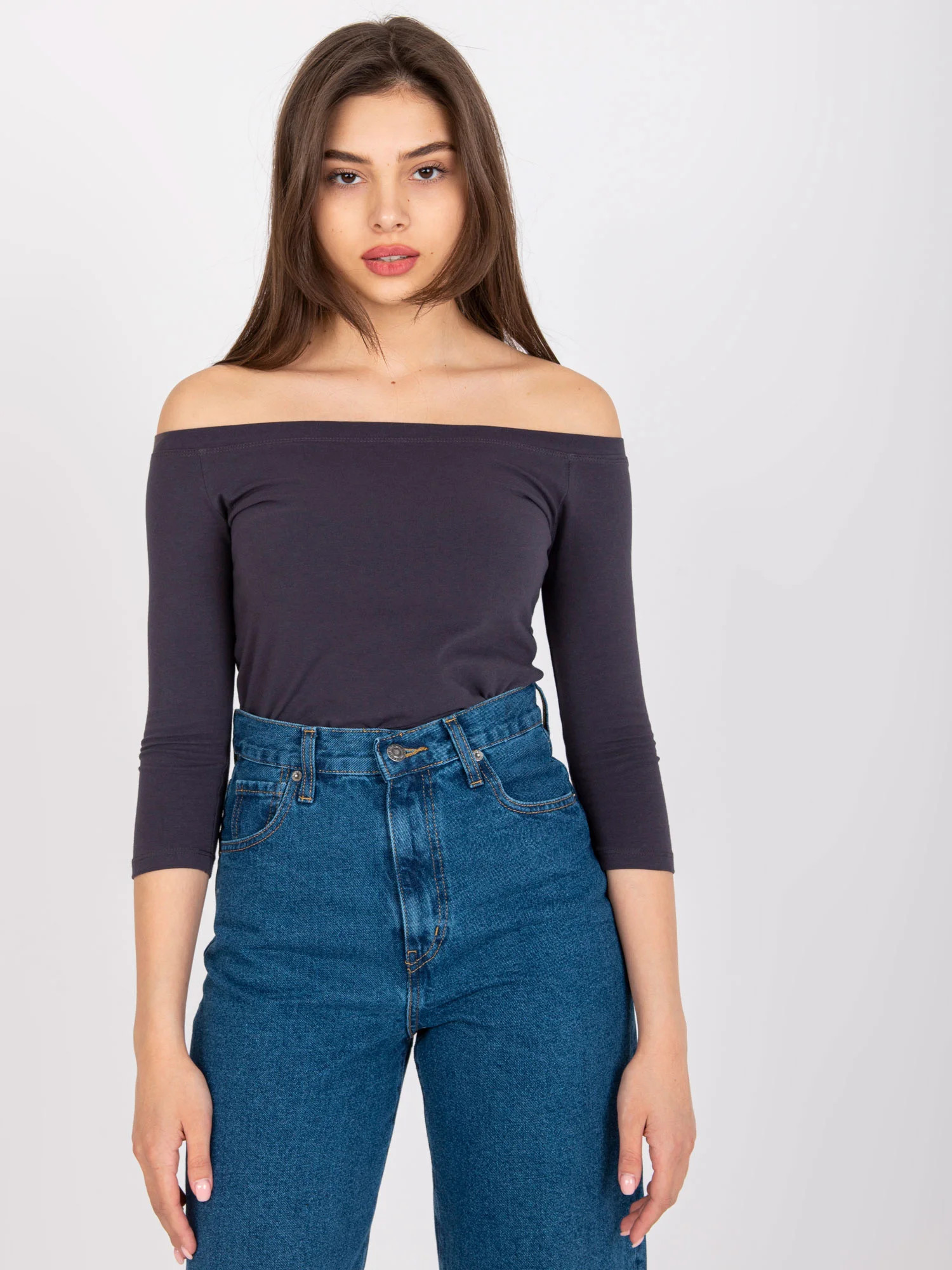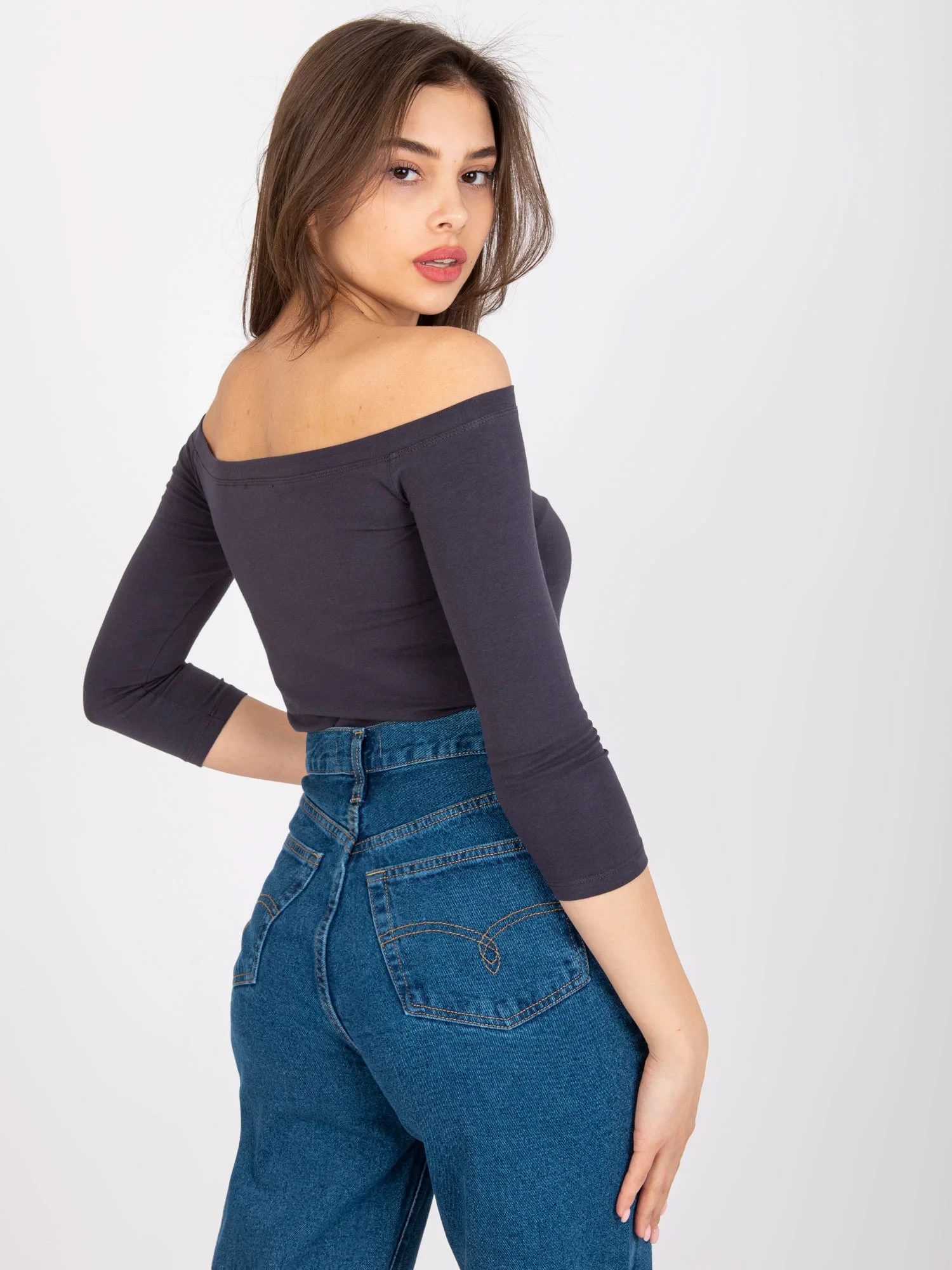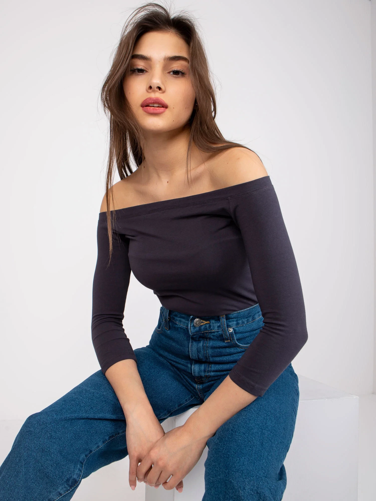 Halenka Graphite Live. Jednobarevná dámská halenka je neocenitelným přínosem pro šatník každé ženy a vytváří nekonečné možnosti stylingu pro každodenní nošení i mimo něj - ať už se chystáte na rande, na venkovní akci nebo s přáteli. Tato základní halenka má zajímavý střih s karmínovým výstřihem. Otevřená ramena a přiléhavý střih zajistí, že vaše postava bude dokonale odhalená a bude vypadat smyslně. Základní halenka je vyrobena z přírodní bavlny smíchané se syntetickým materiálem pro měkkost, hebkost a pohodlí. Halenka nesklouzává z ramen a neprosvítá. Je dokonalým doplňkem každodenního stylingu, díky kterému budete vypadat módně a žensky.
