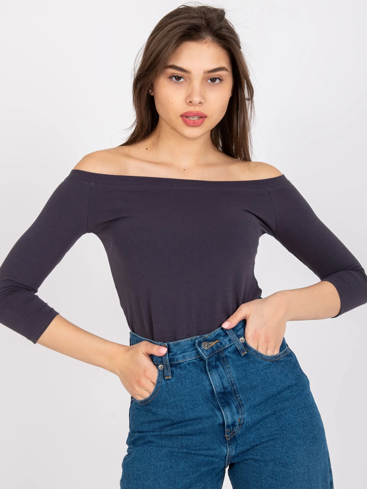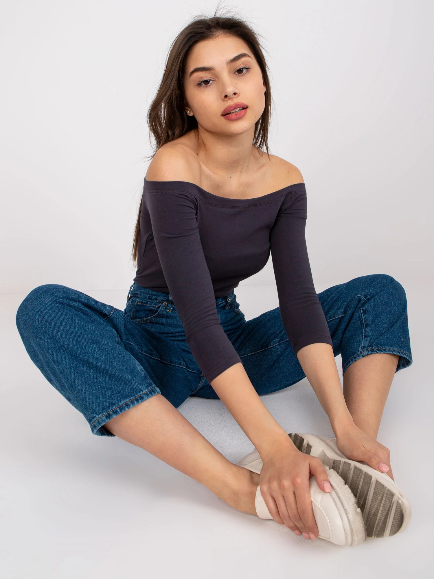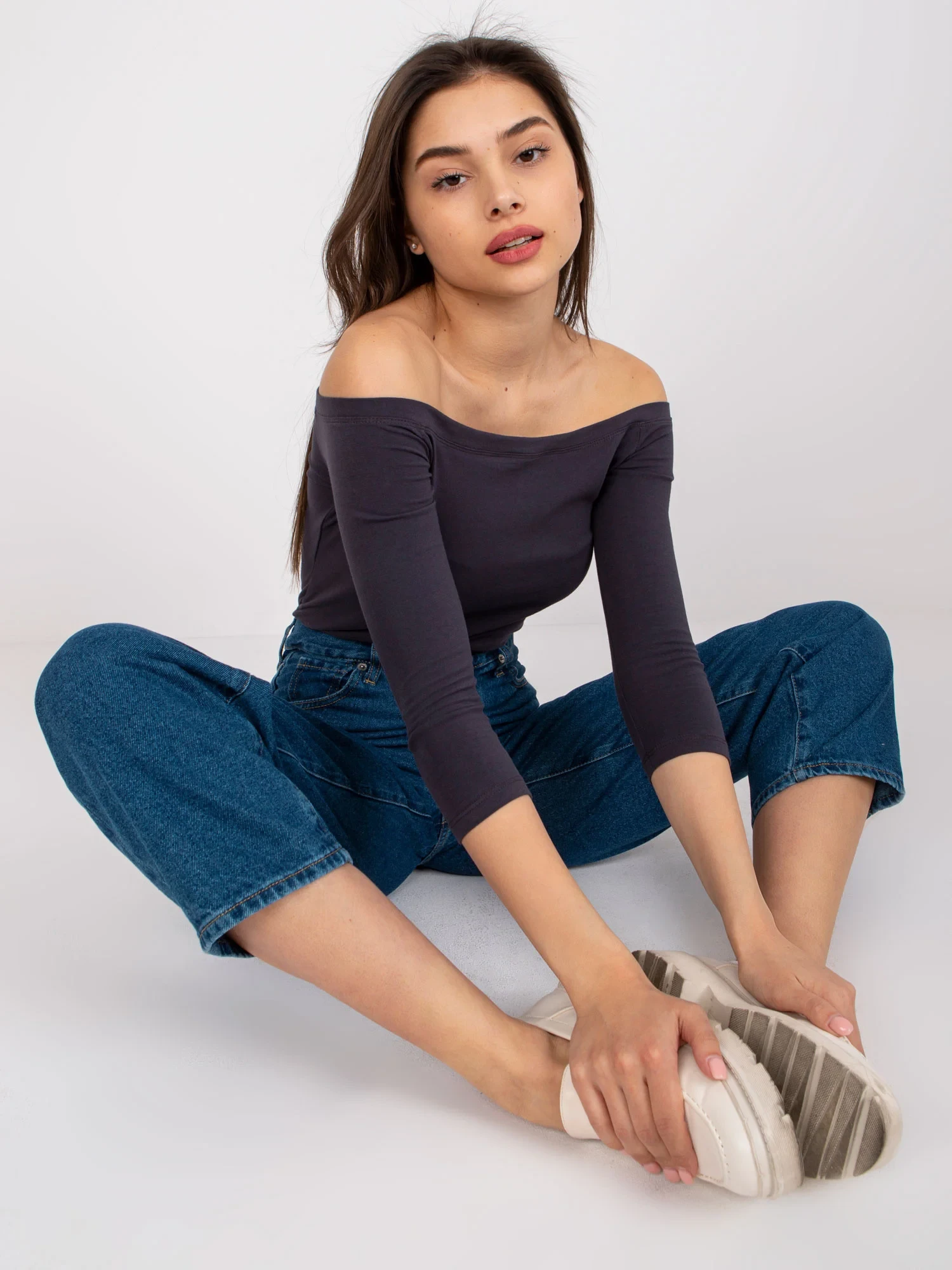 Halenka Graphite Live. Jednobarevná dámská halenka je neocenitelným přínosem pro šatník každé ženy a vytváří nekonečné možnosti stylingu pro každodenní nošení i mimo něj - ať už se chystáte na rande, na venkovní akci nebo s přáteli. Tato základní halenka má zajímavý střih s karmínovým výstřihem. Otevřená ramena a přiléhavý střih zajistí, že vaše postava bude dokonale odhalená a bude vypadat smyslně. Základní halenka je vyrobena z přírodní bavlny smíchané se syntetickým materiálem pro měkkost, hebkost a pohodlí. Halenka nesklouzává z ramen a neprosvítá. Je dokonalým doplňkem každodenního stylingu, díky kterému budete vypadat módně a žensky.