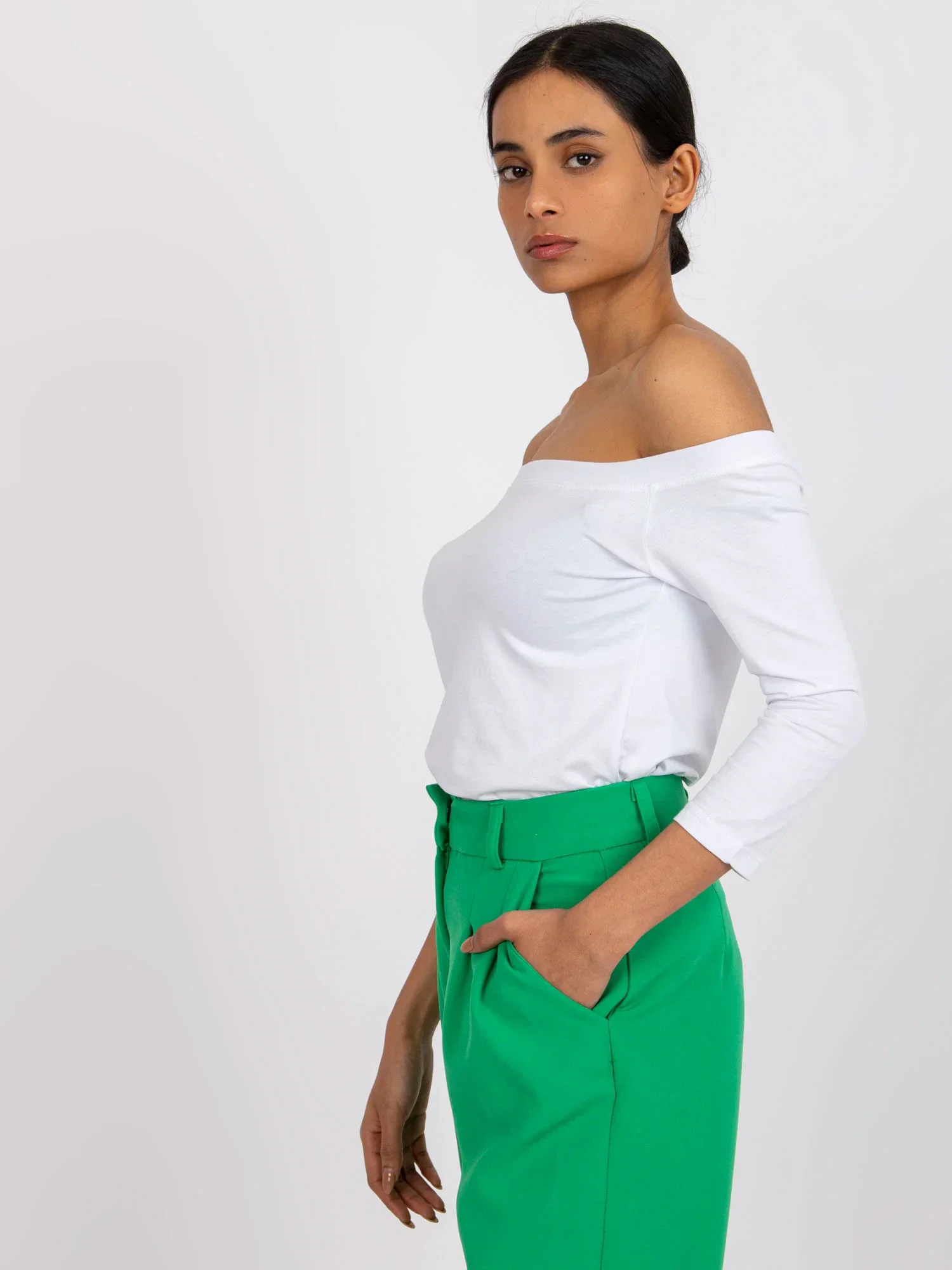 Bílá halenka basic Live . Hladké halenky jsou nepostradatelnou součástí mnoha módních dámských outfitů. Díky nim si snadno a rychle vytvoříme požadovaný vzhled, aniž bychom ztrácely čas a zbytečně se namáhaly. Tato halenka basic byla navržena pro ženy, které ocení oblečení zdůrazňující přednosti jejich těla. Španělský výstřih krásně odhaluje ramena a krk, takže působí velmi smyslně. Halenka je ideální do teplejších jarních dnů a letních veder. Je vyrobena z látky příjemné na dotek, která je velmi pohodlná a příjemná k pokožce. Vysoký obsah bavlny zajišťuje plnou prodyšnost materiálu. Halenka basic má střih na míru a módní 3/4 rukávy, takže dokonale odpovídá nejnovějším trendům.