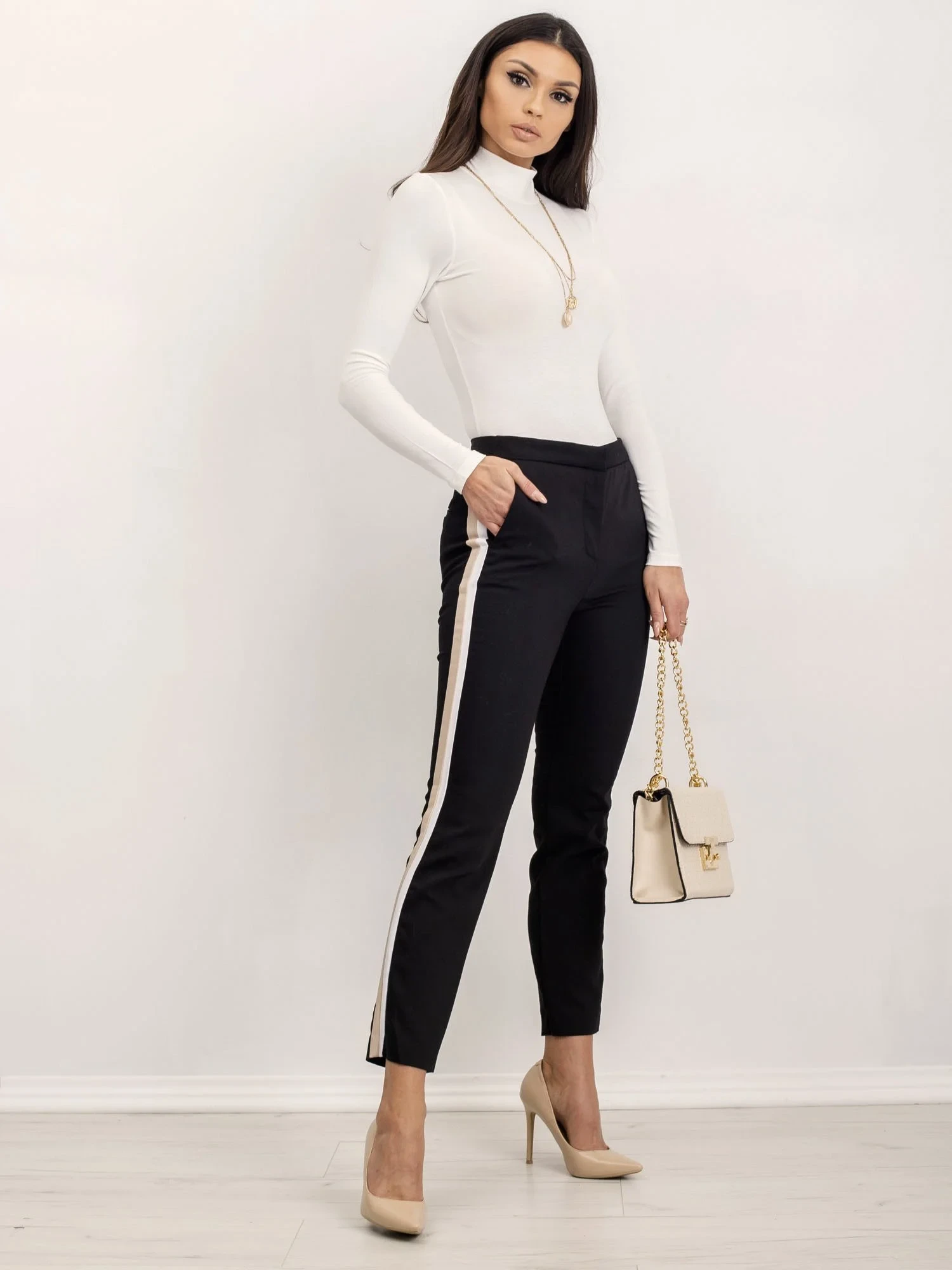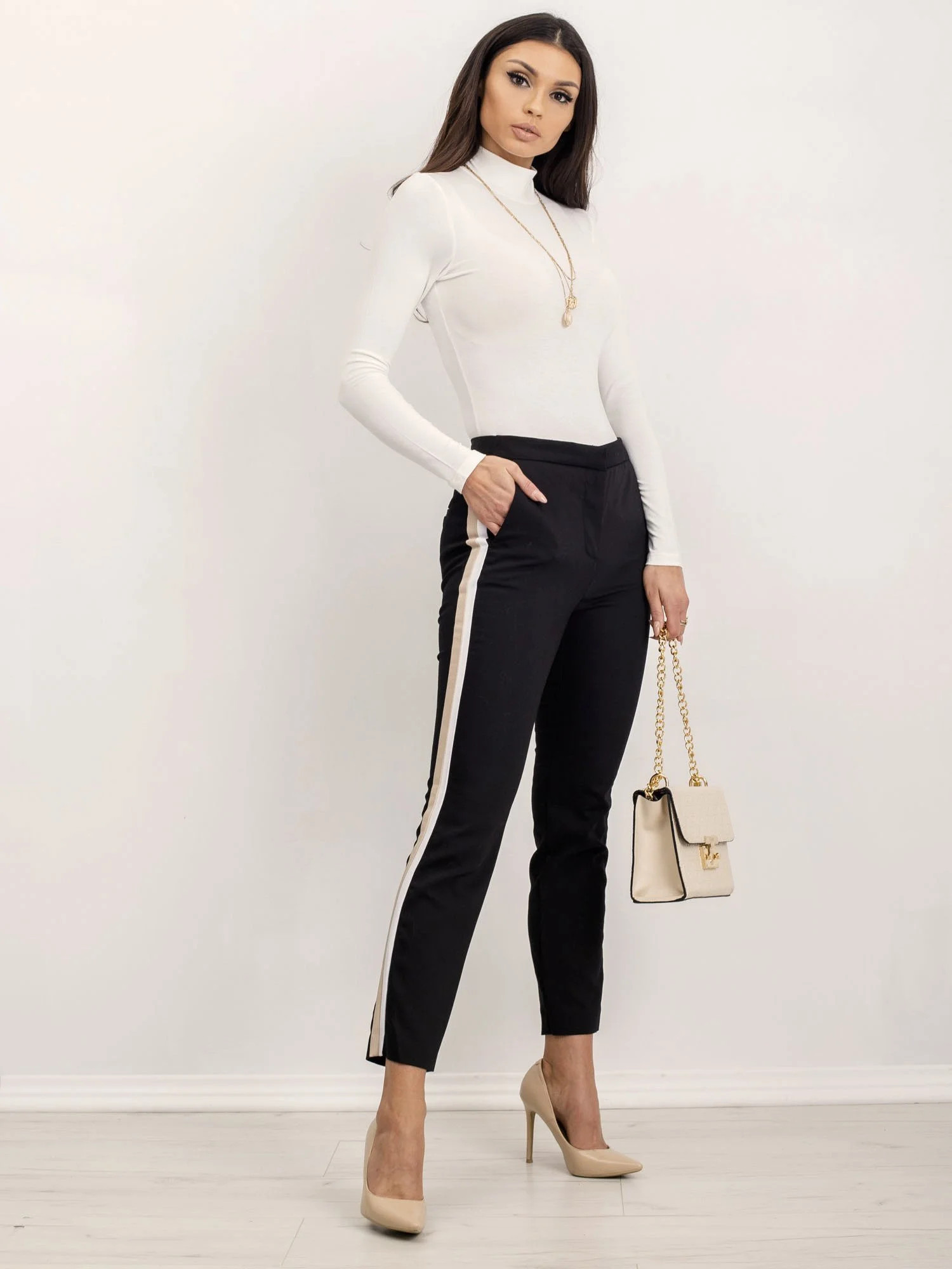 Modelka má na sobě velikost S. Rozměry modelky: výška 168 cm, poprsí 89 cm, pas 60 cm, boky 91 cm.