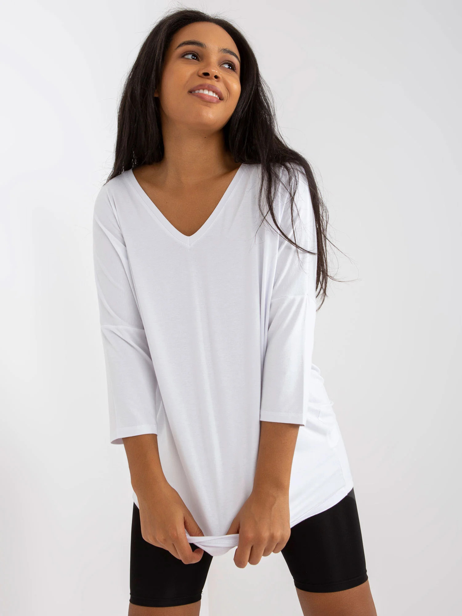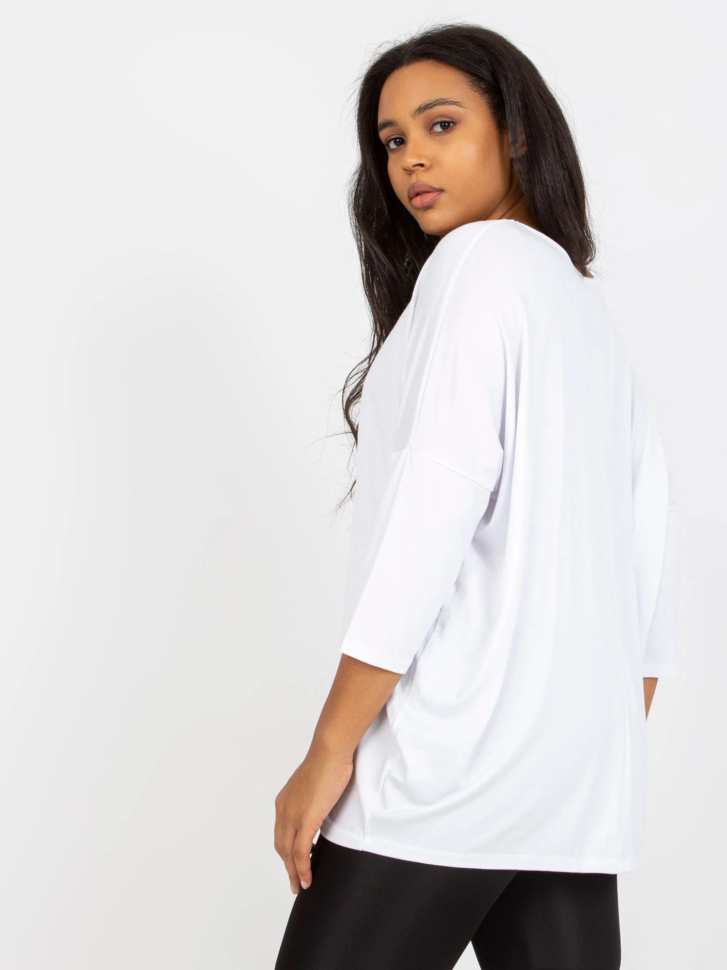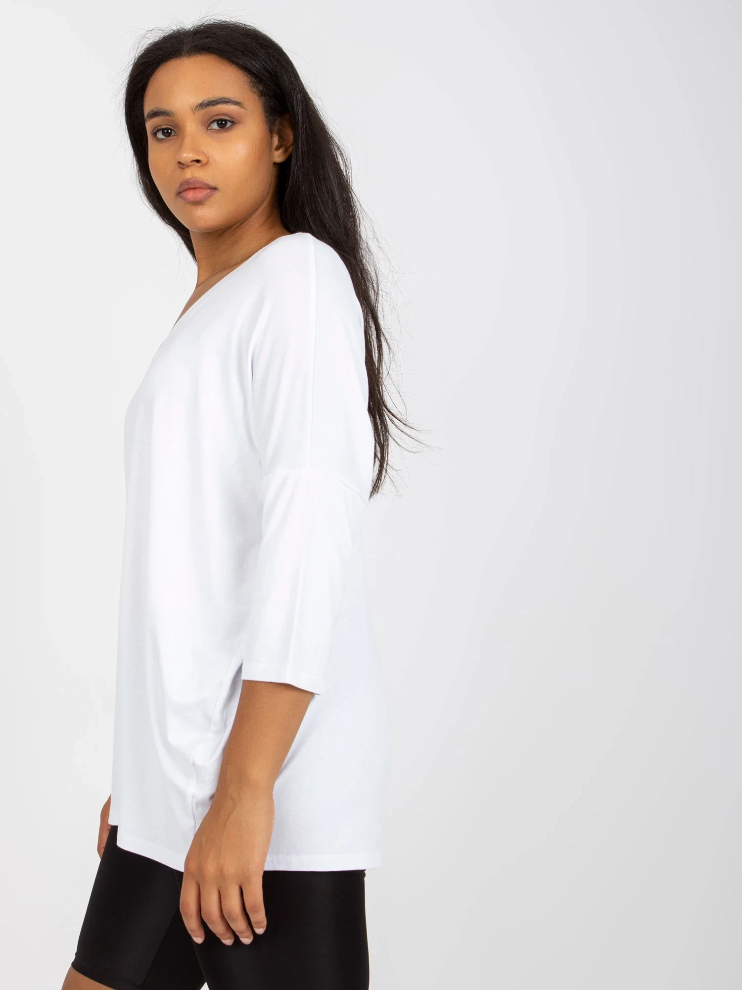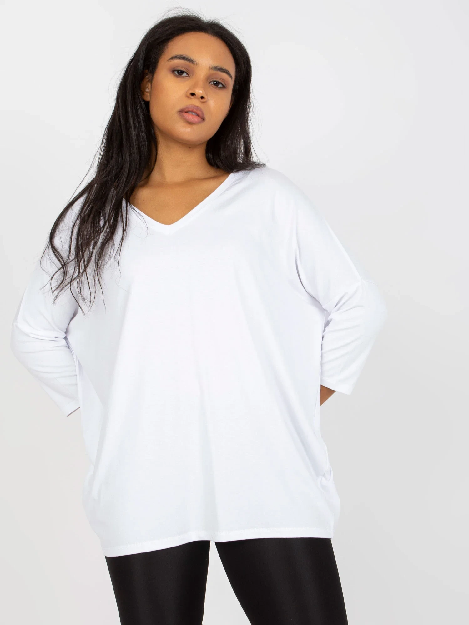 Bílá halenka plus size pro každodenní nošení s výstřihem do V .