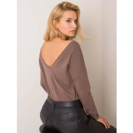 Hnědá halenka s výstřihem na zádech.