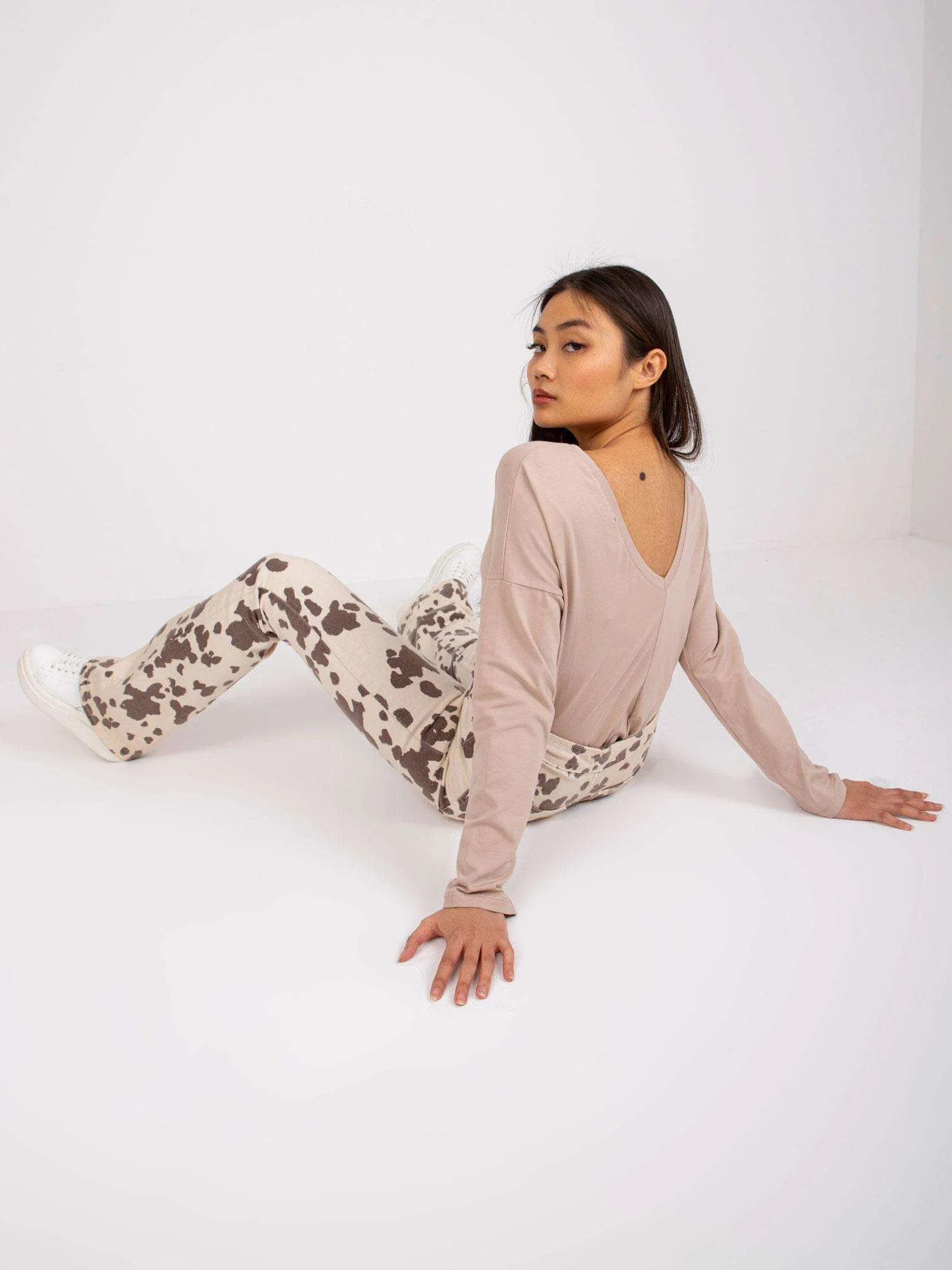 Modelka má na sobě velikost S. Míry modelky: výška 165 cm, prsa 83 cm, pas 64 cm, boky 89 cm.