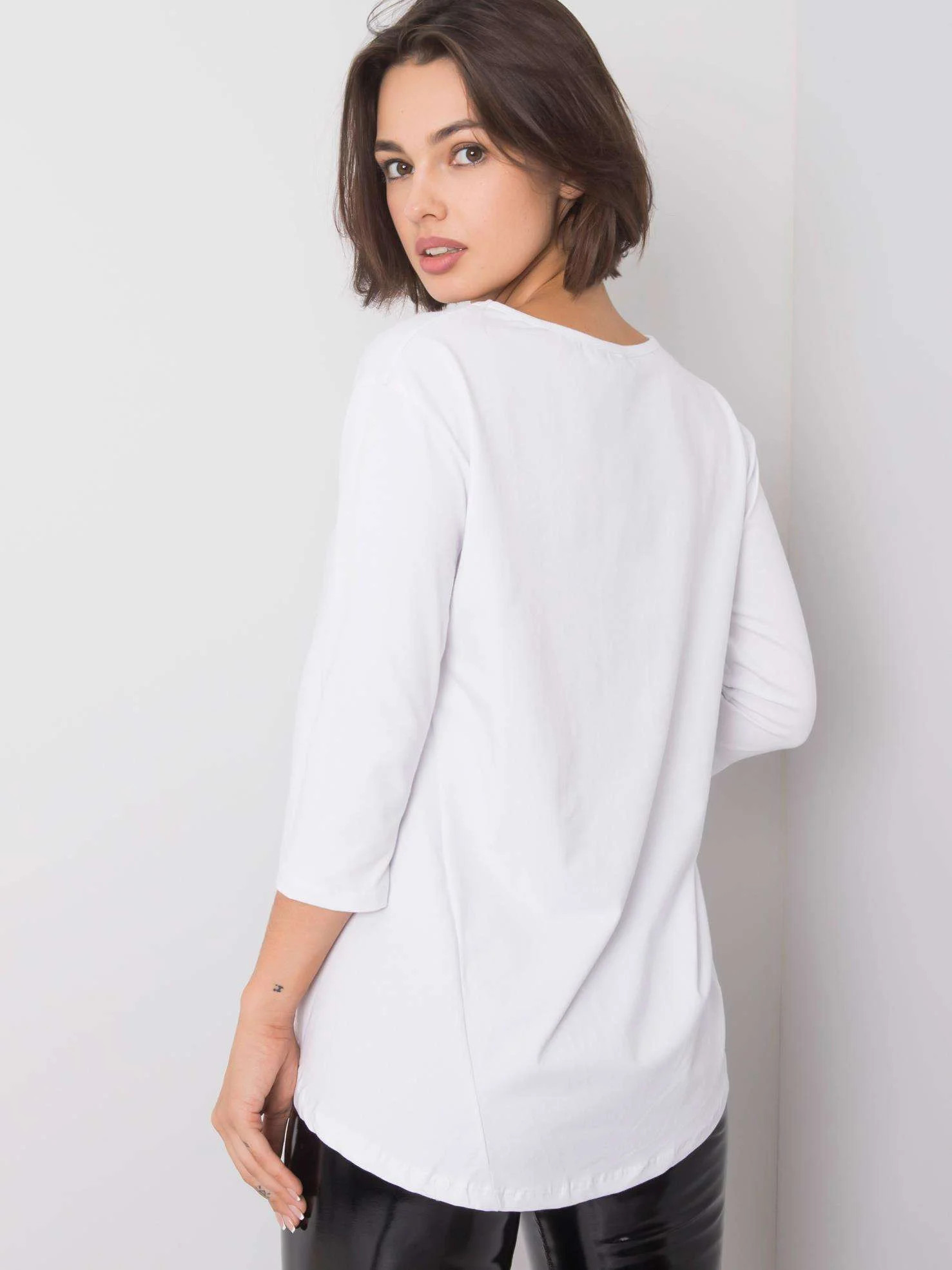 Bílá halenka s 3/4 rukávy.