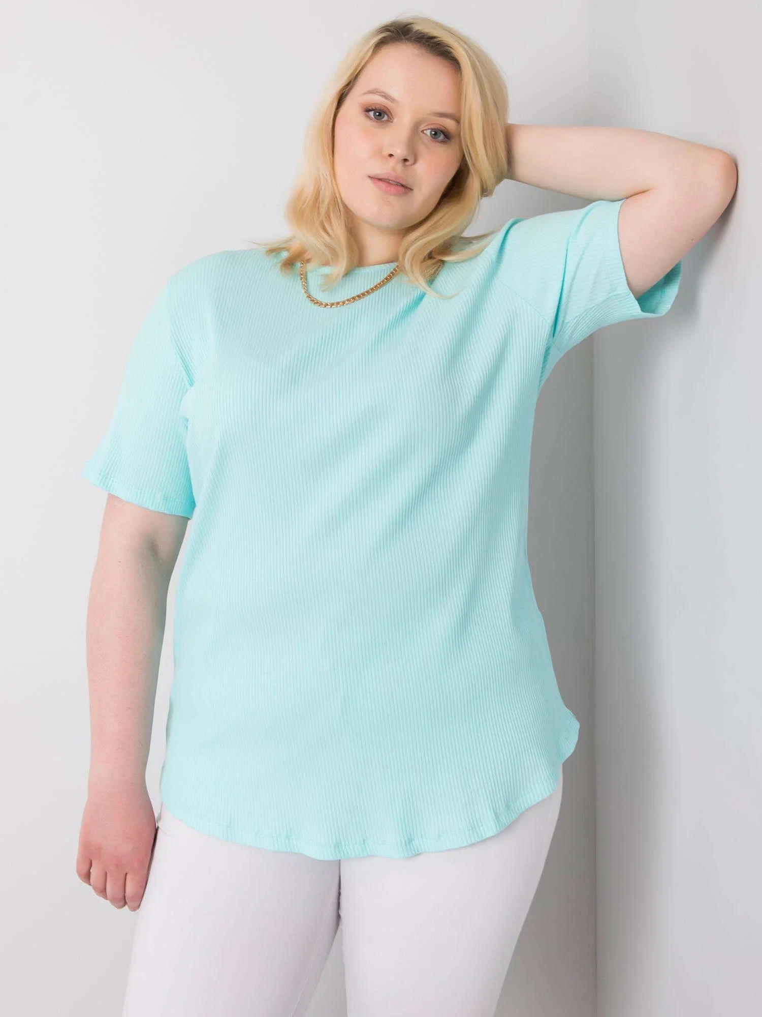 Halenka plus size v mátové barvě s žebrovaným vzorem.
