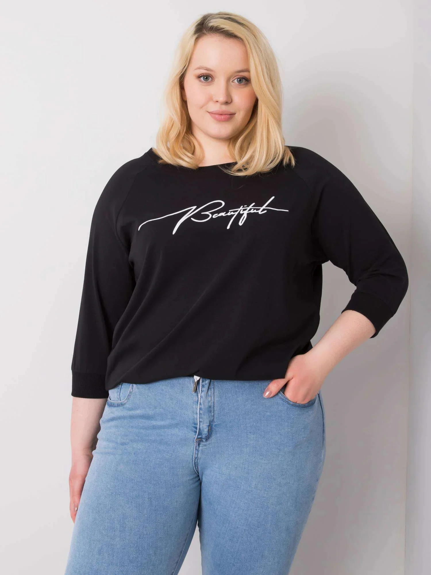 Černá dámská halenka s nápisy.