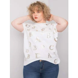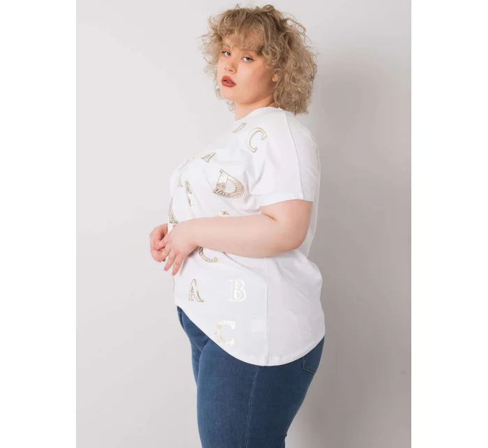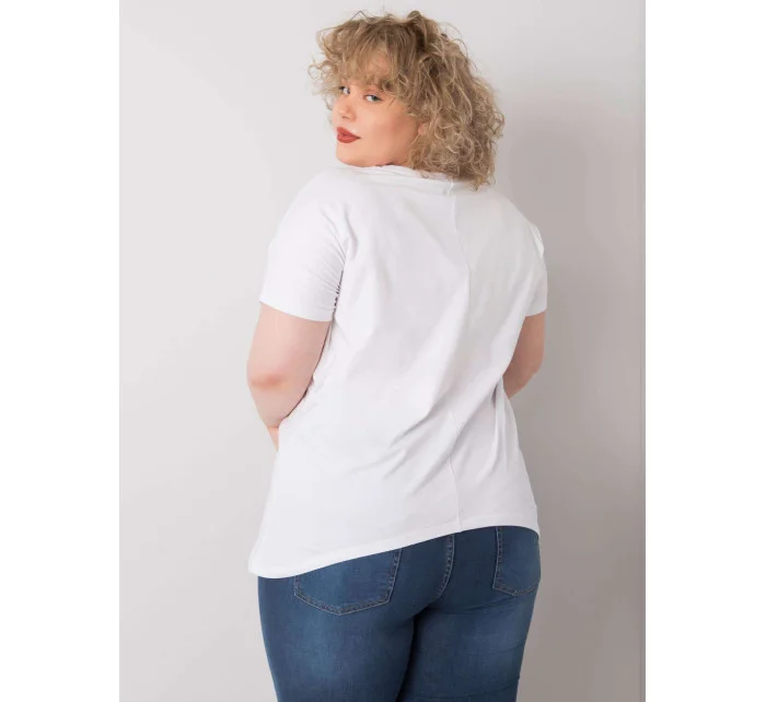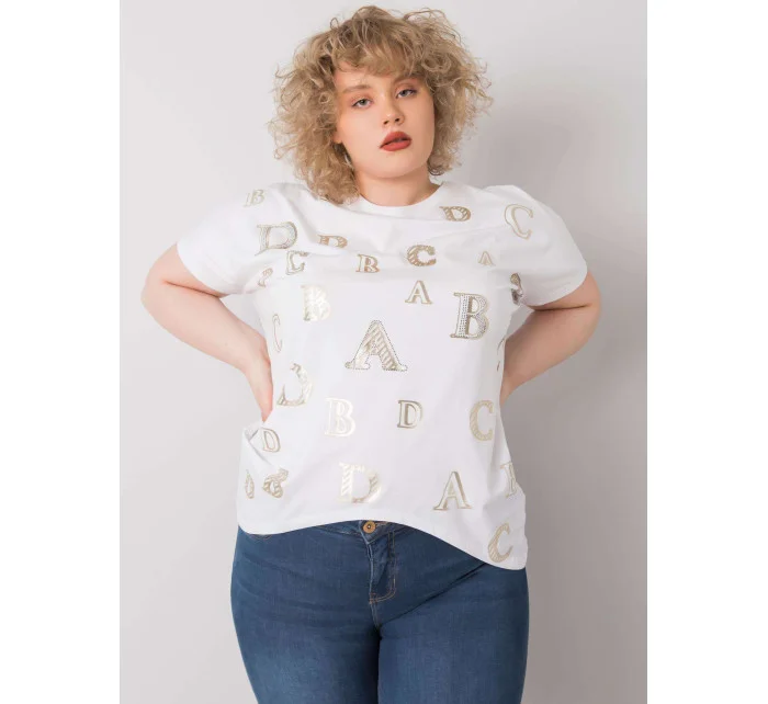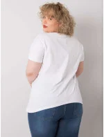 Bílá plus size halenka s potisky.
